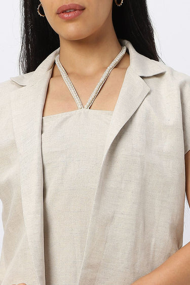 تصميم عصري أنيق فضفاض واسع بتفاصيل على شكل جاكيت بليزر قصير من نفس اللون