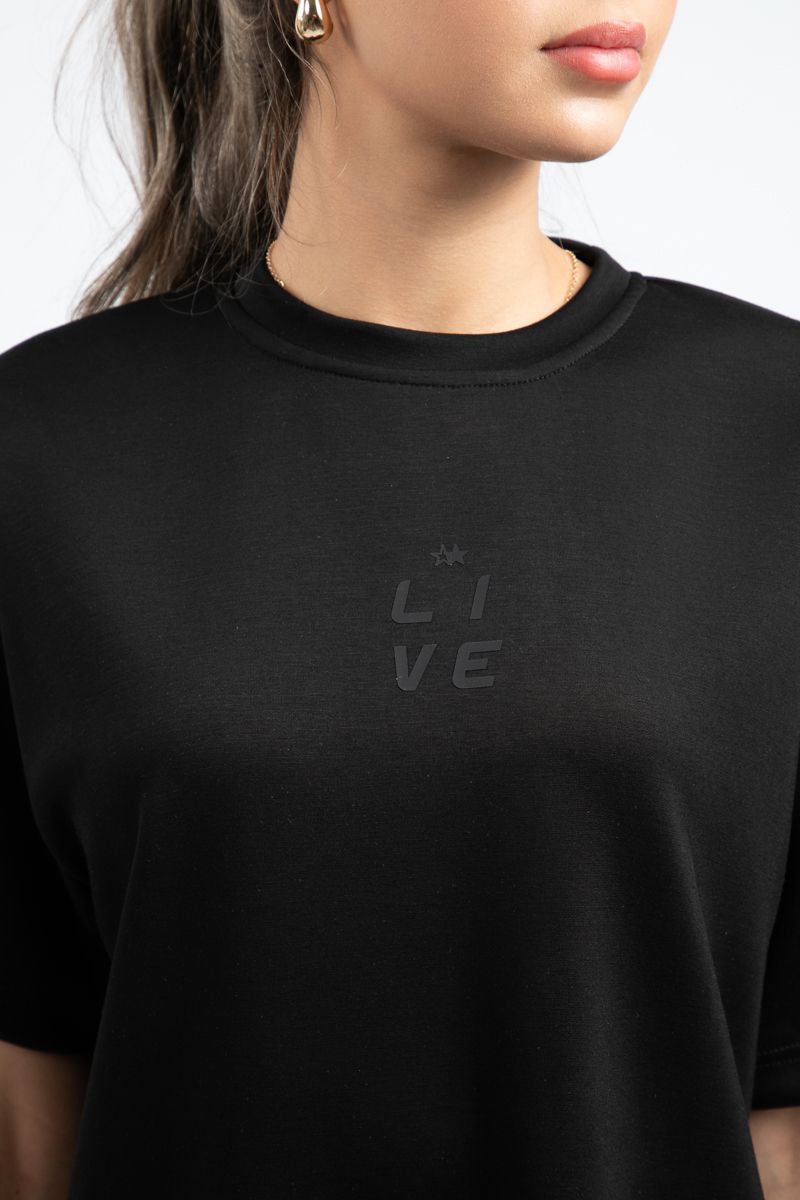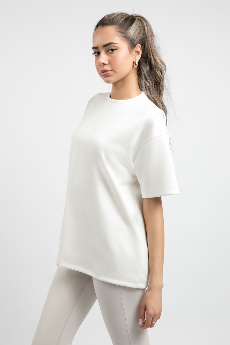 تيشيرت نسائي كاجوال بأكمام قصيرة – تصميم بلون موحد مع طبعة بنفس اللون