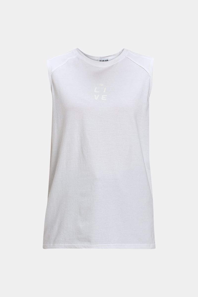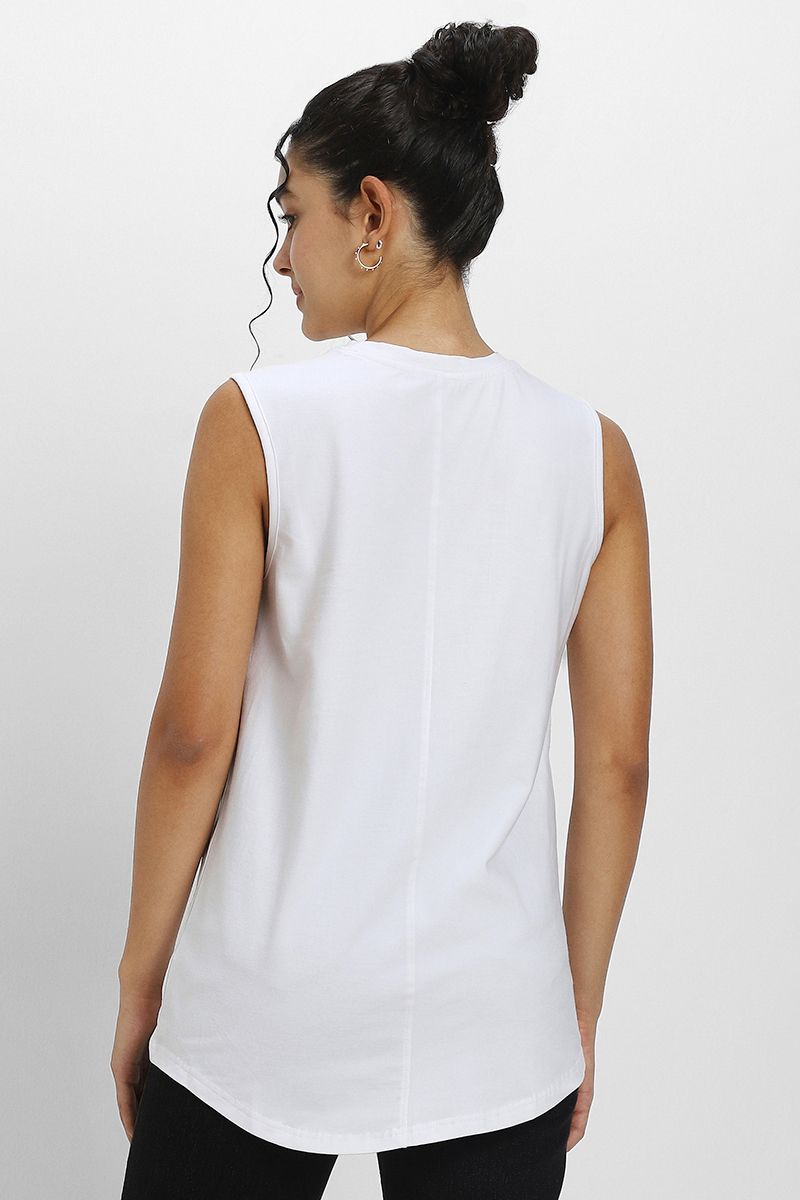 تيشيرت نسائي كاجوال بدون أكمام – تصميم بلون موحد مع طبعة بنفس اللون