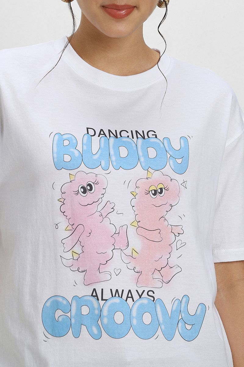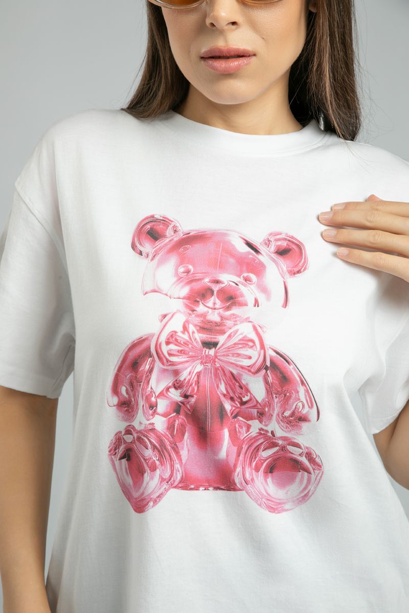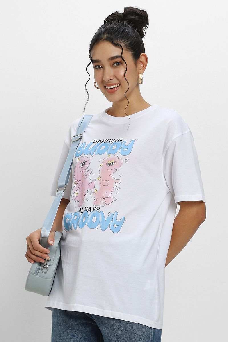 تيشيرت نسائي كاجوال – بأكمام قصيرة وطبعة من الأمام