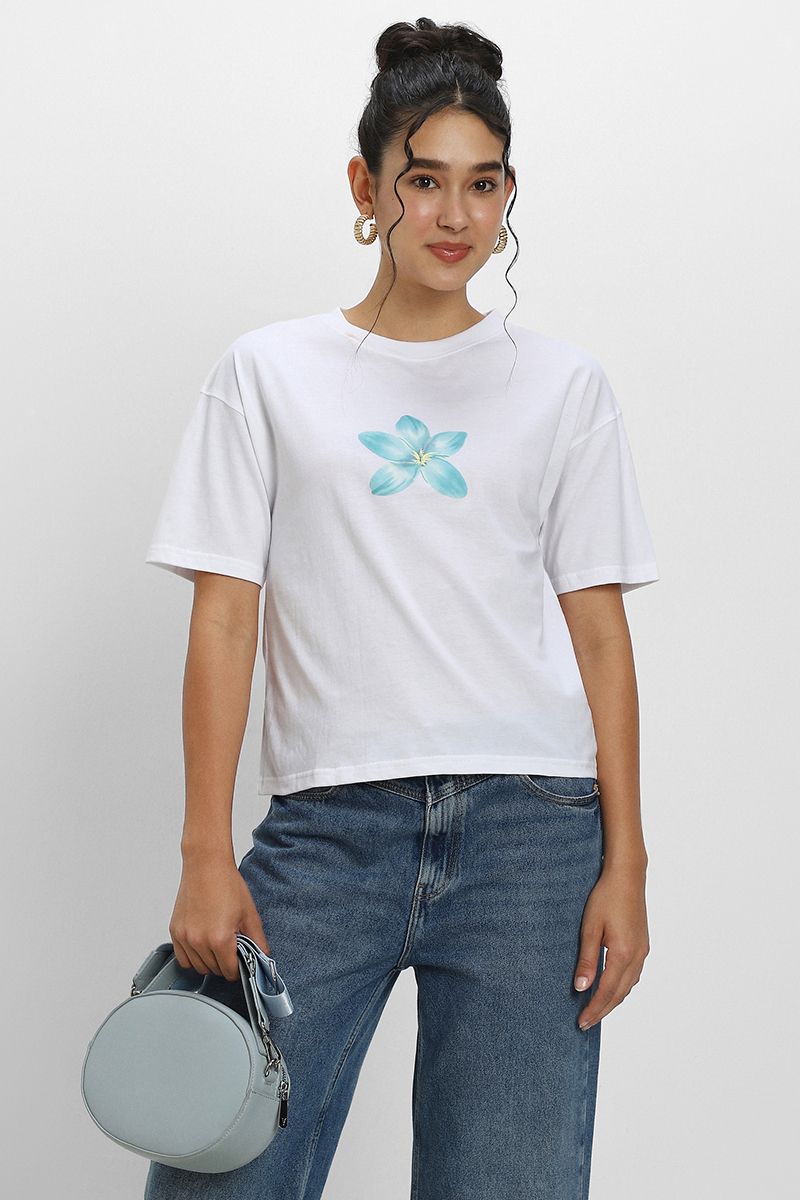 تيشيرت نسائي كاجوال – بأكمام قصيرة وطبعة من الأمام