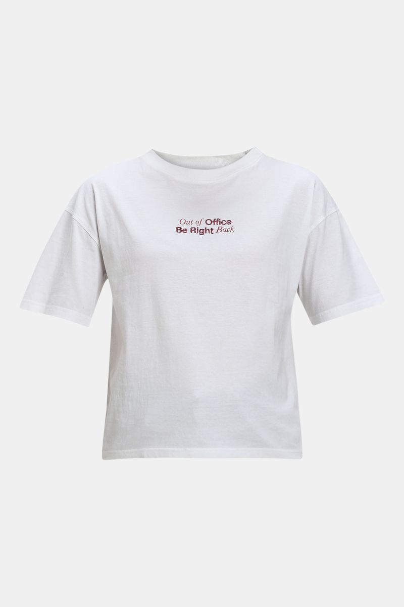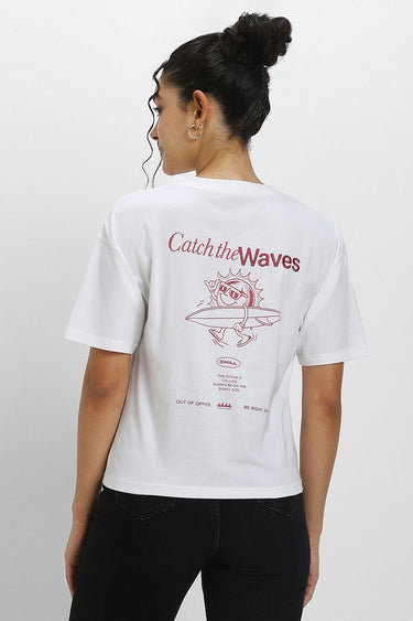 أضيفي لمسة مرحة إلى إطلالتك اليومية مع هذا التيشيرت النسائي الكاجوال المميز بطبعة على الجهتين الأمامية والخلفية