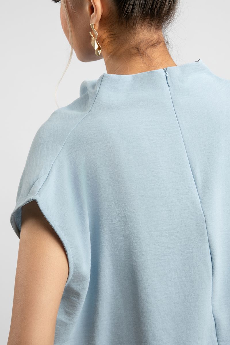 توب نسائي أنيق بأكمام قصيرة – بلون موحّد مع سحاب خلفي