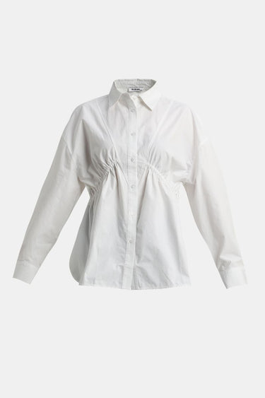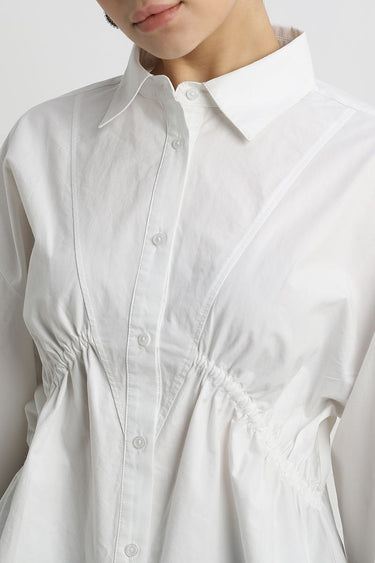 مصمم للمرأة العصرية، يتميز هذا القميص بأكمام طويلة ولون موحد مع تفاصيل تقليم أنيقة تبرز الخصر لتعزيز القامة بشكل جذاب. يأتي بياقة كلاسيكية وأزرار أمامية، ليمنحك إطلالة مهنية أنيقة وواثقة تناسب المكتب والبيئات الرسمية.