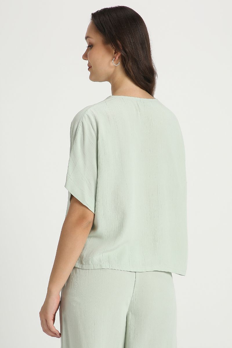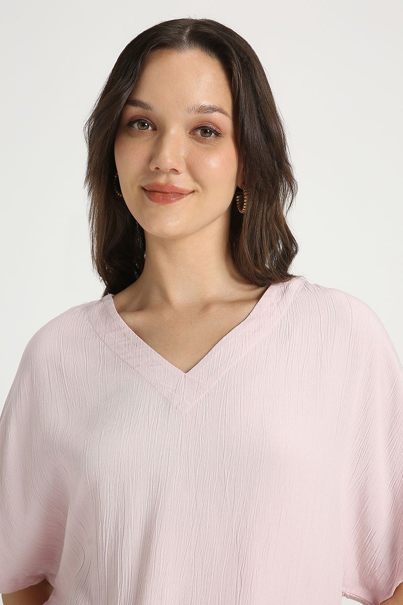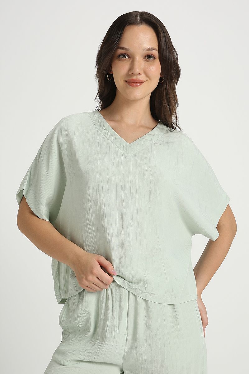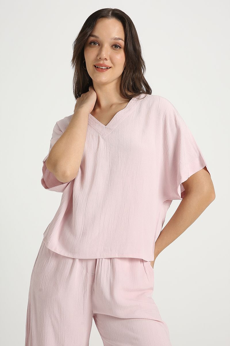 التيشيرت مزوّد بأكمام قصيرة وياقة على شكل V تبرز جمال العنق وتمنحك إطلالة أنثوية جذابة، ما يجعله مثالياً لأيام الاسترخاء في المنزل أو الإطلالات الكاجوال الخفيفة