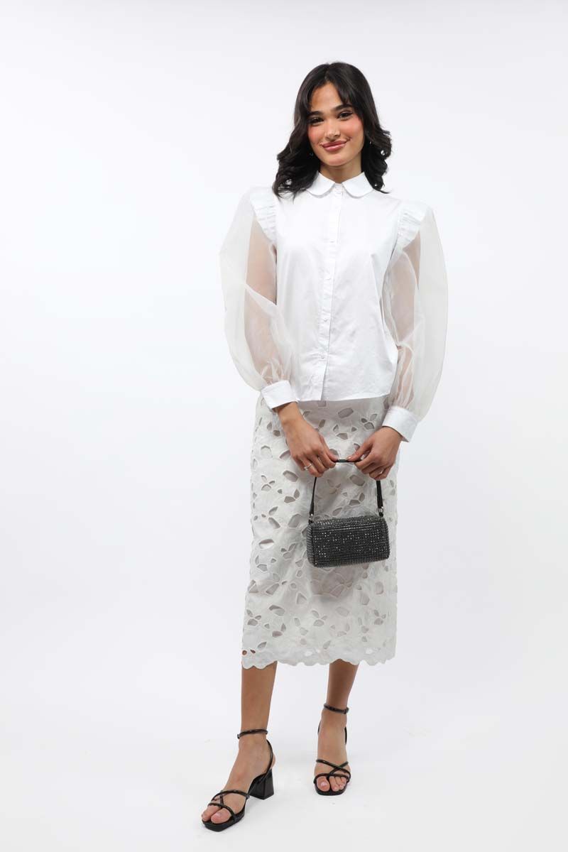 مزينة بنمط فتحات وتفاصيل تطريز بارزة من نفس اللون