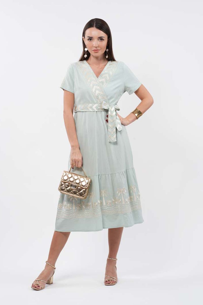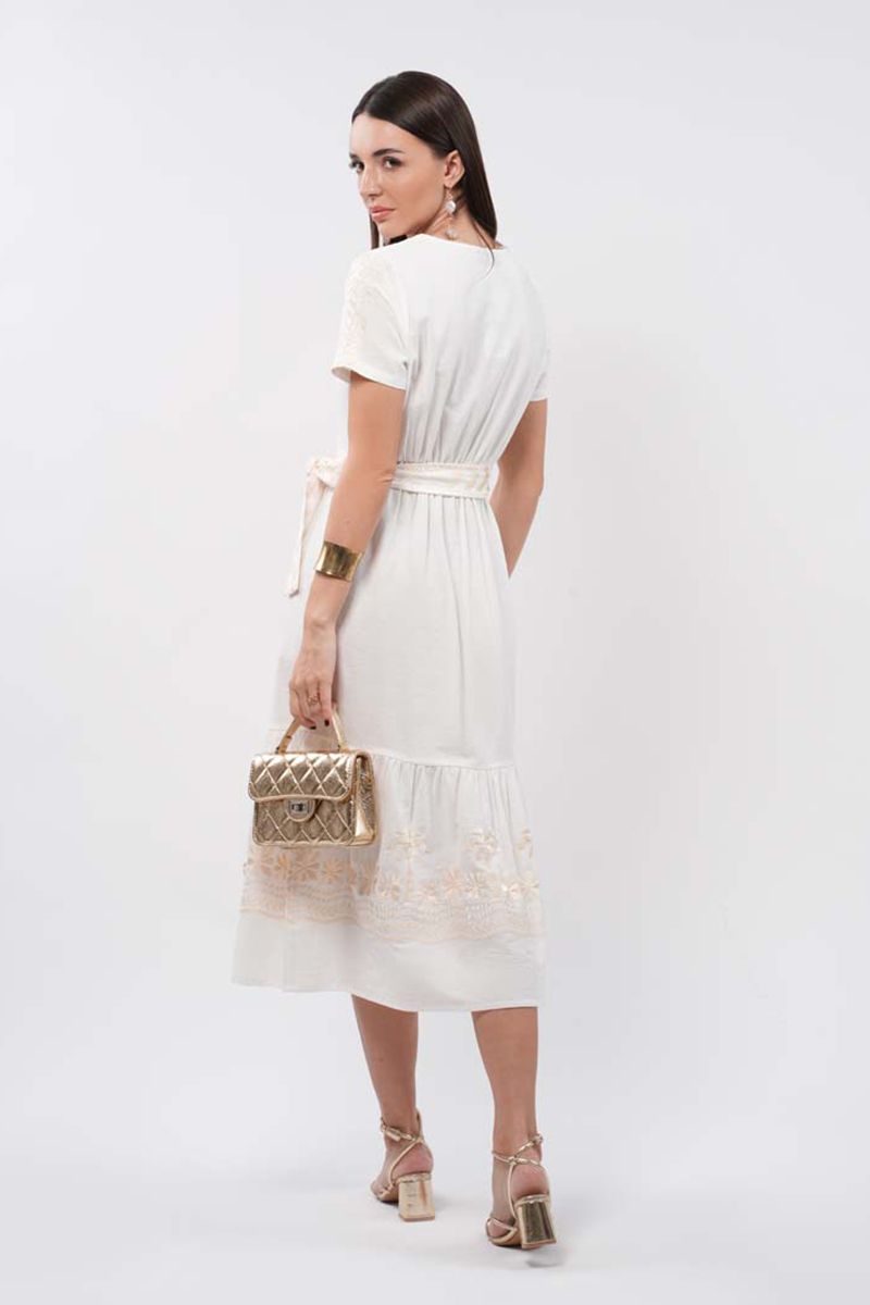 فستان نسائي تحت الركبة بأكمام قصيرة