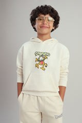 هودي أطفال بقصة مريحة مع قبعة وأكمام طويلة وتفاصيل مطبوعة مناسب للاستخدام اليومي