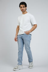 بنطلون مصنوع من قماش الجينز بقصة مستقيمة توفر توازنًا بين الراحة والثبات. يتميز بتصميم كلاسيكي بخمسة جيوب مع حلقات للحزام وقصة عملية مناسبة للاستخدام اليومي والإطلالات الكاجوال.
