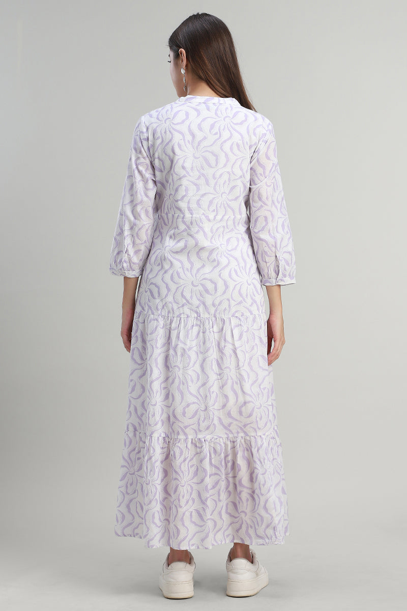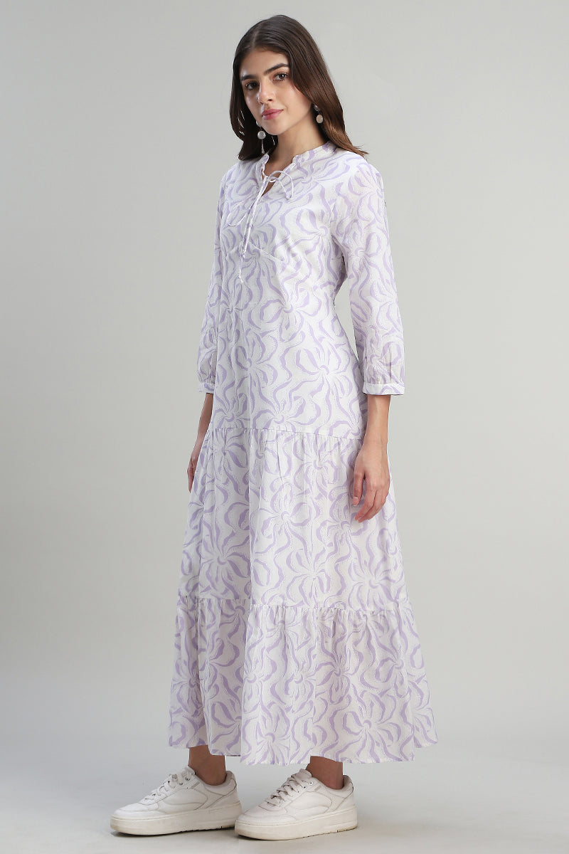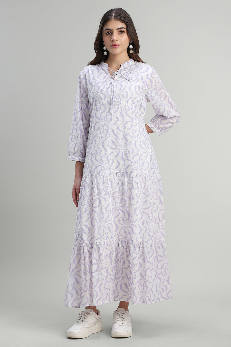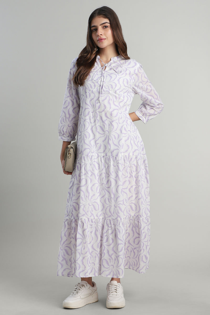 فستان ماكسي بطبقات بطبعة ناعمة