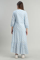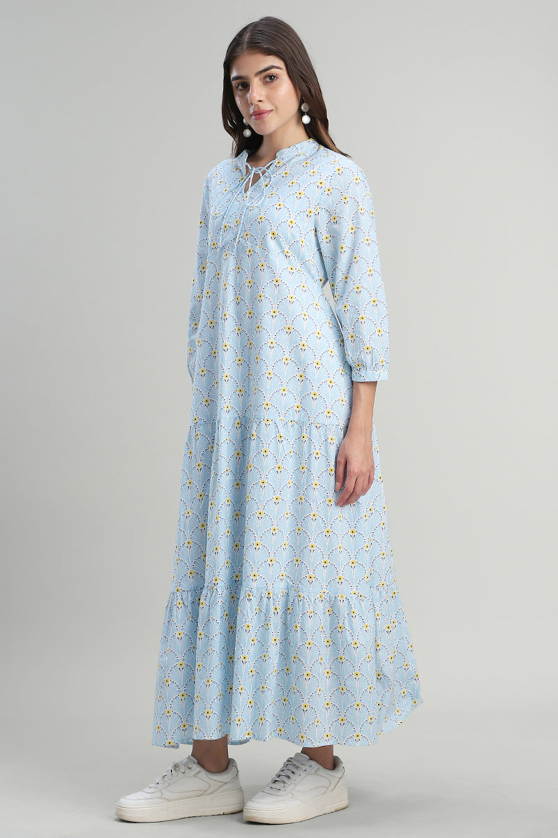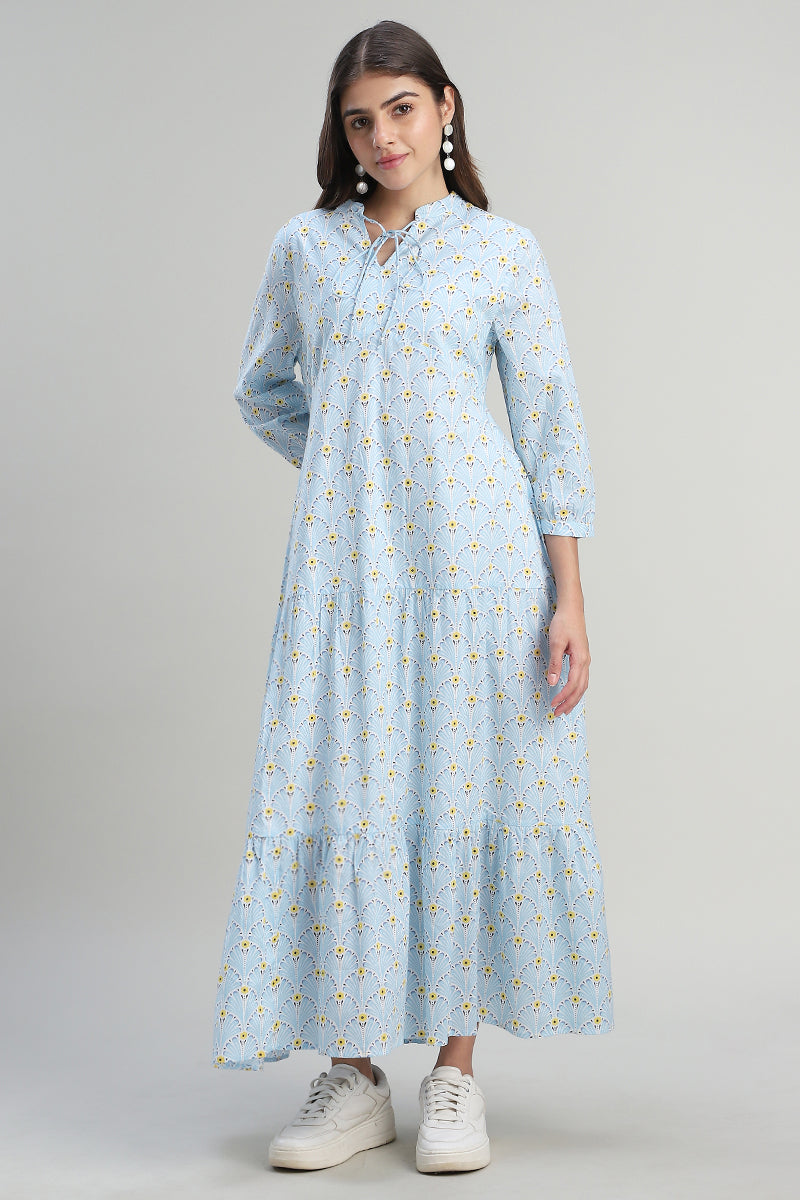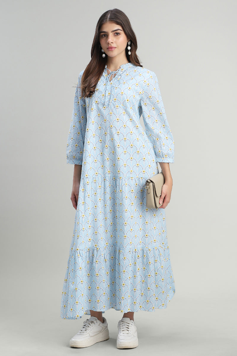 فستان ماكسي بطبقات بطبعة ناعمة
