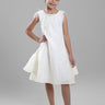 فستان بناتي بياقة كلاسيكية وتفاصيل ريش