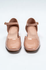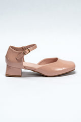 حذاء بتصميم أنيق بملمس ناعم وكعب منخفض مريح. يتميز برباط حول الكاحل مع إبزيم قابل للتعديل لتثبيت مناسب ومرونة في الحركة. المقدمة المغلقة تمنح مظهراً بسيطاً وعملياً يناسب الاستخدام اليومي أو الإطلالات شبه الرسمية. قطعة عملية تجمع بين الراحة والمظهر المرتب.