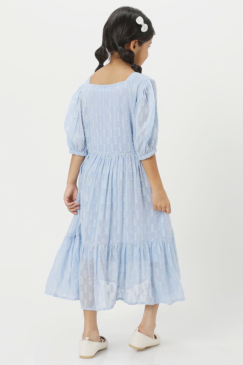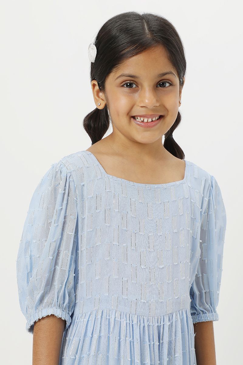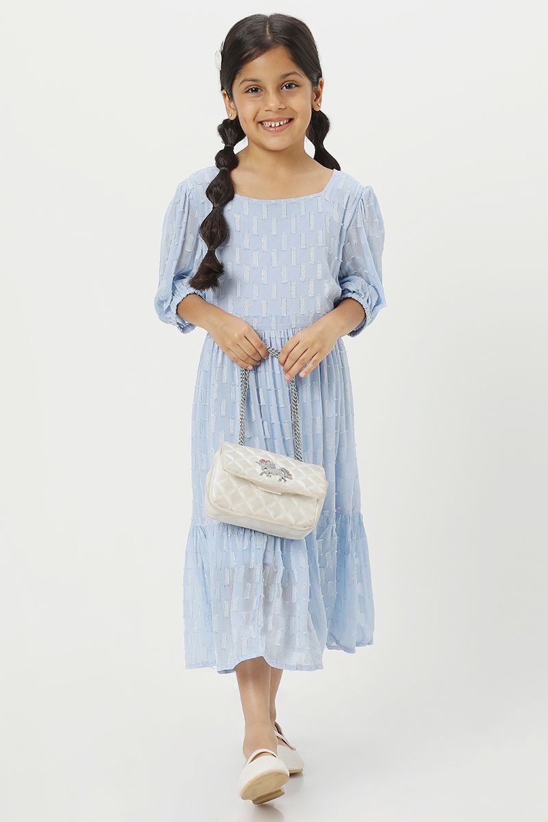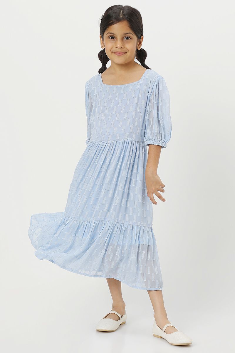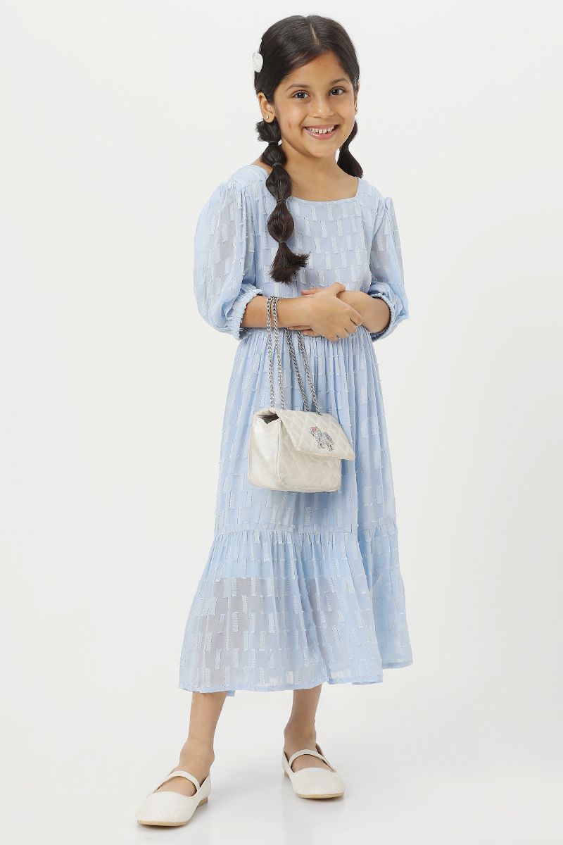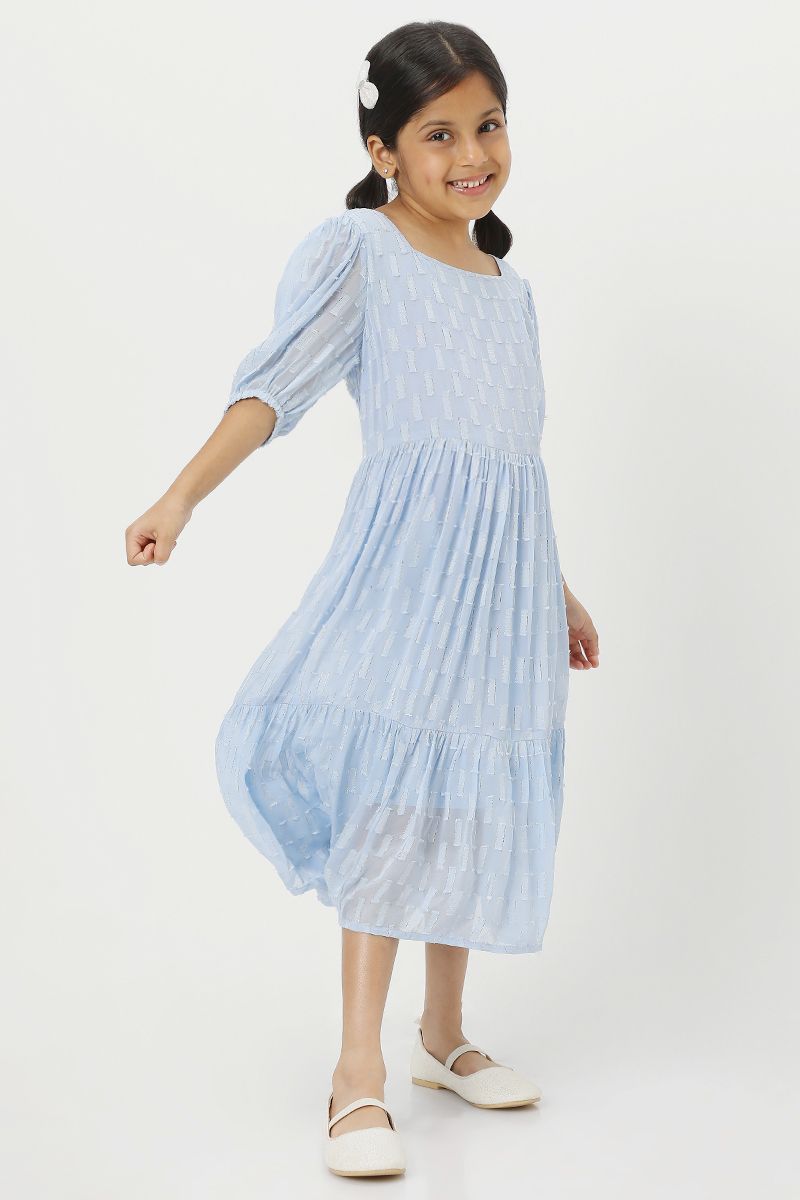 فستان بناتي طويل بأكمام ثلاثة أرباع