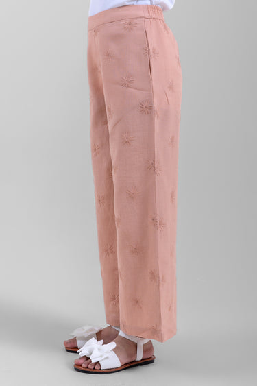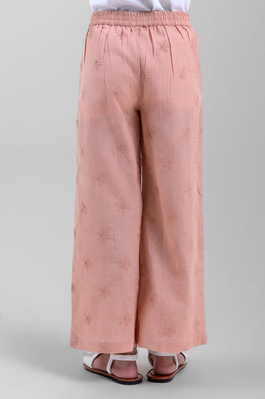 بنطلون بنات بتصميم منسوج وقصة واسعة مع خصر مطاطي لراحة أفضل. يوفر حرية حركة وقصة مريحة تناسب الاستخدام اليومي أو الإطلالات الأنيقة.