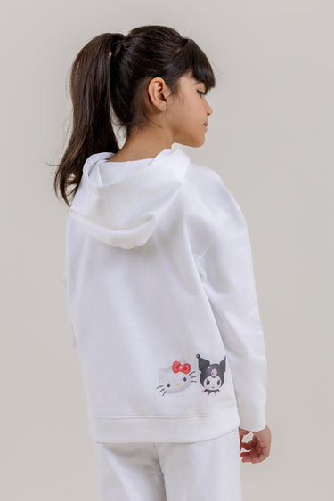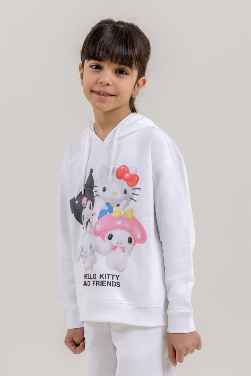 هودي أطفال مصمم للراحة والاستخدام اليومي. مصنوع من قماش ناعم ومريح يمنح إحساسًا دافئًا ولطيفًا على البشرة. يأتي بقصة مريحة مع قبعة عملية وأساور مضلعة لمزيد من الثبات. مزود بطبعة Hello Kitty and Friends ملونة على الجهة الأمامية مع تصميم خلفي بسيط. مناسب للارتداء اليومي، المدرسة، أو الخروج.