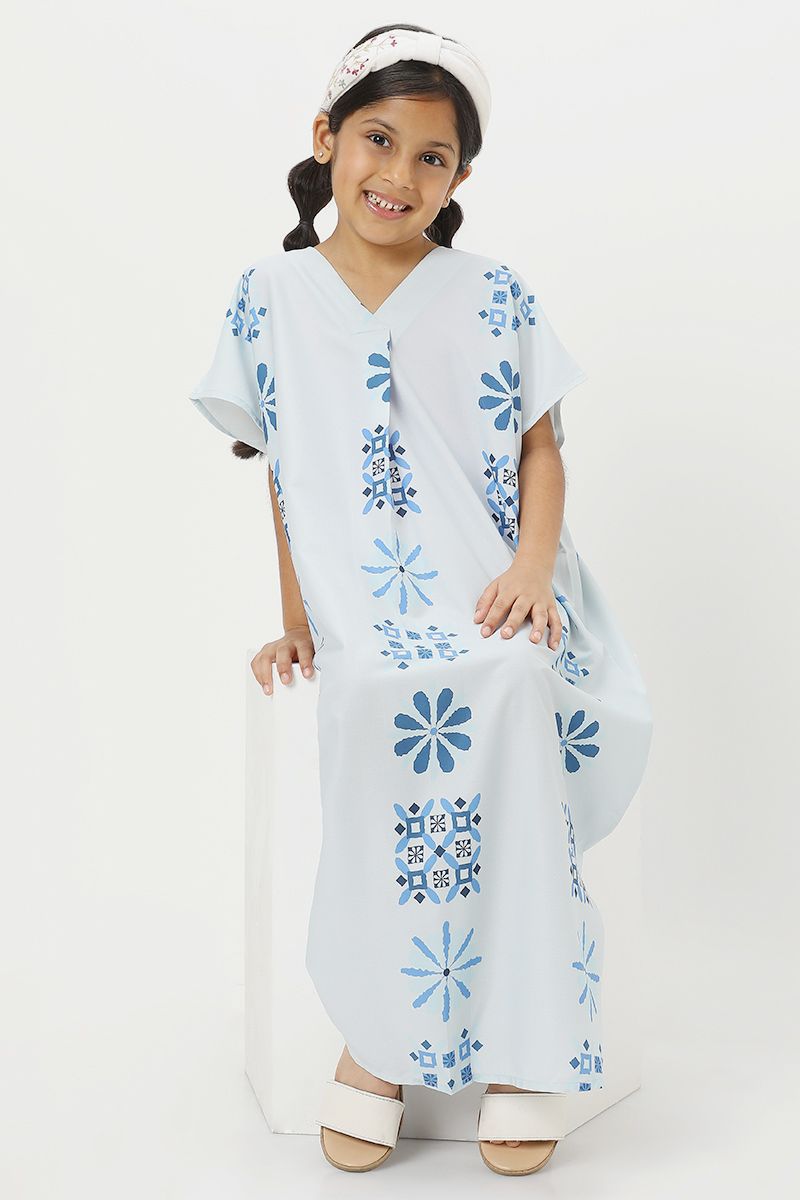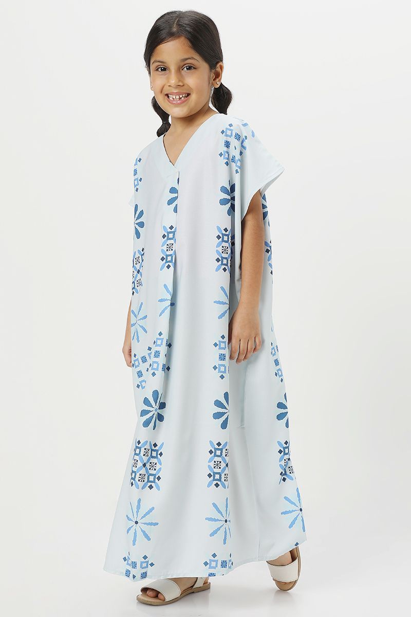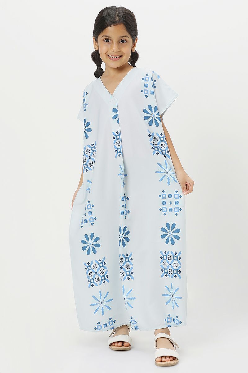 فستان جلابية بناتي ماكسي ذات خامة خفيفة وبأكمام قصيرة