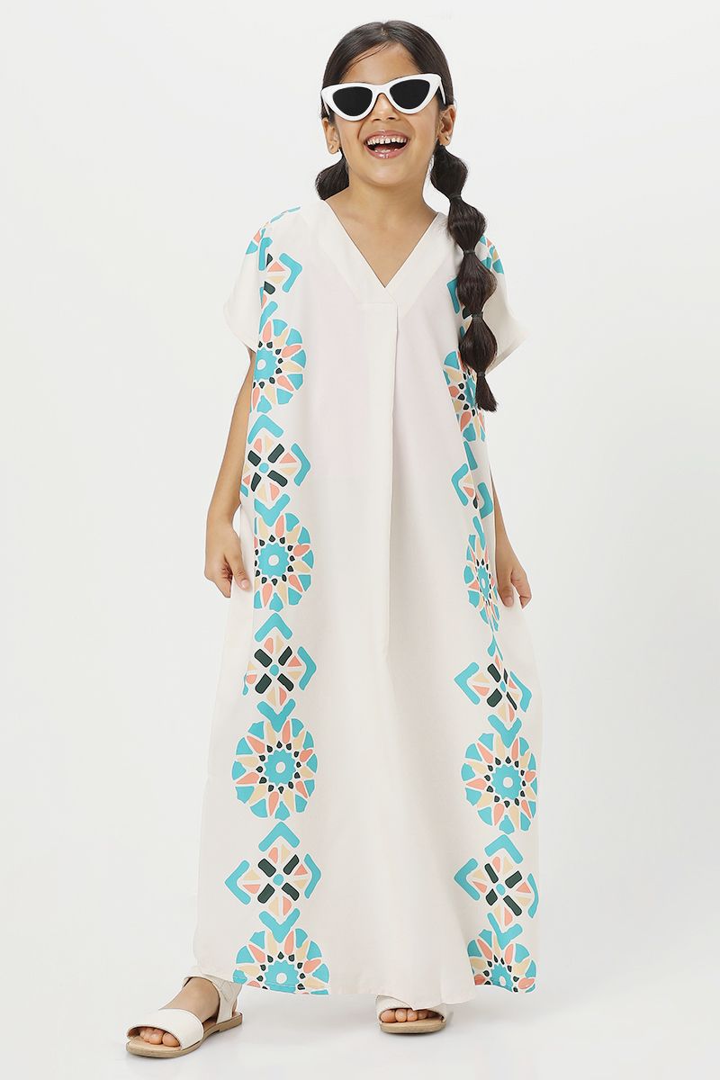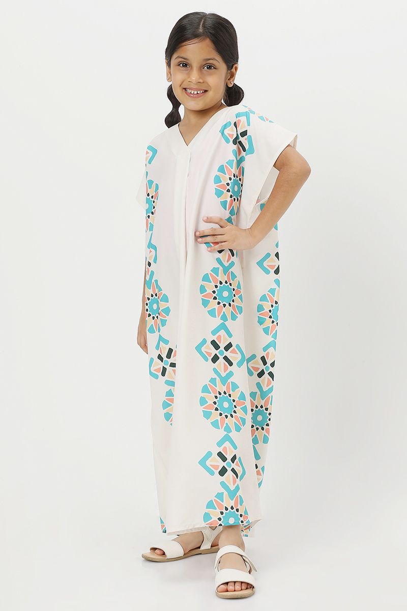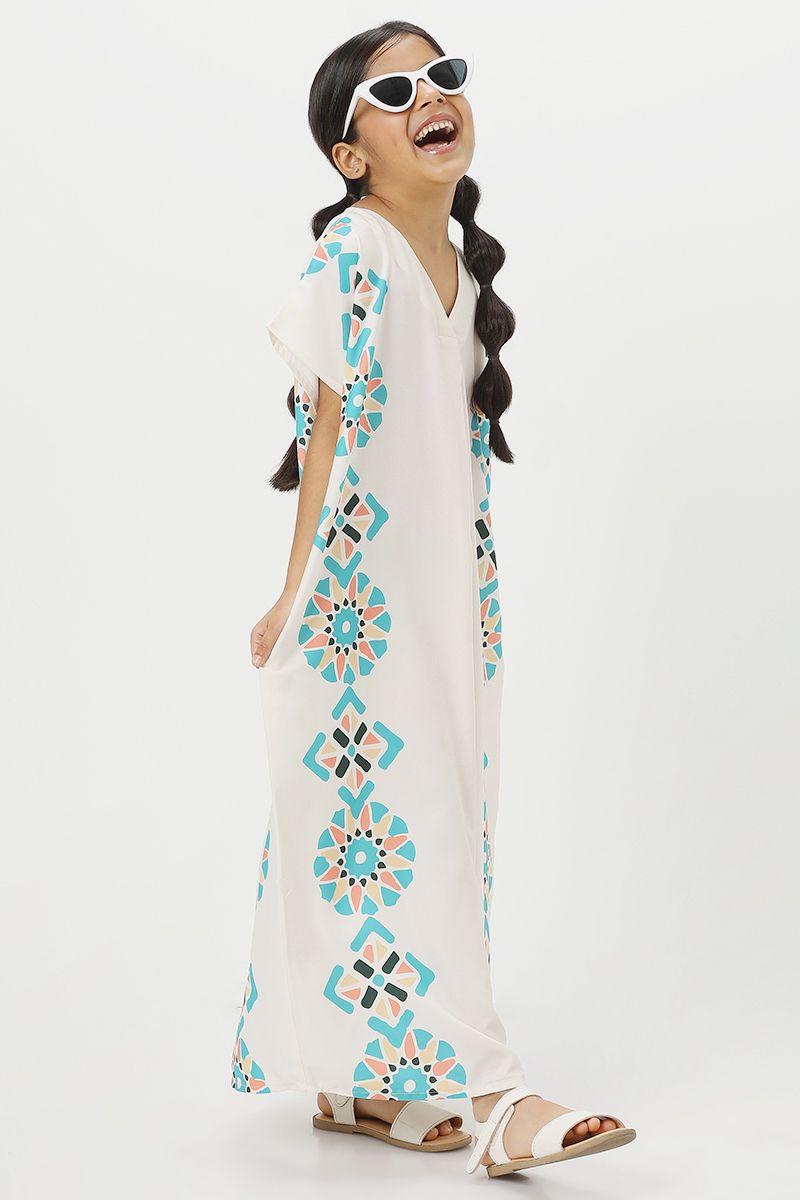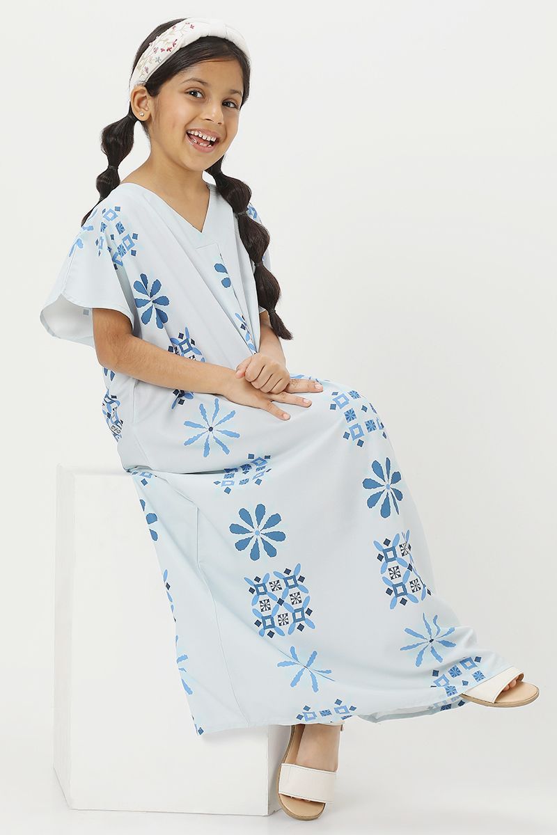 فستان جلابية بناتي ماكسي ذات خامة خفيفة وبأكمام قصيرة