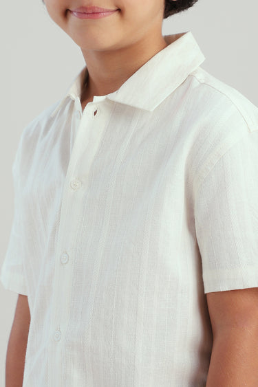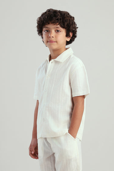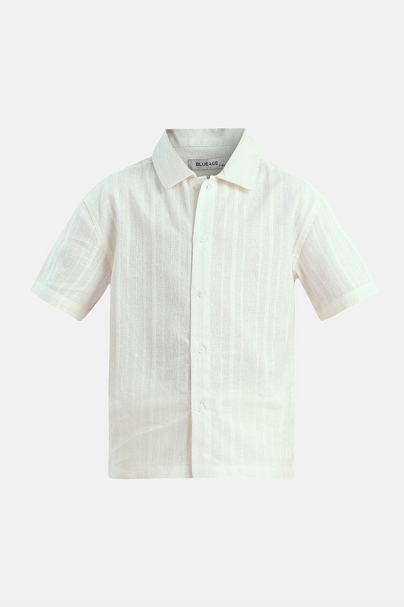 قميص اطفال بأكمام قصيرة مصمم للراحة والارتداء اليومي يتميز بياقة كلاسيكية وازرار امامية وقصة مريحة وخامة خفيفة مناسب للارتداء اليومي والخروجات والمناسبات سهل التنسيق مع الشورتات او البناطيل ومثالي للارتداء المنفرد او مع طبقات