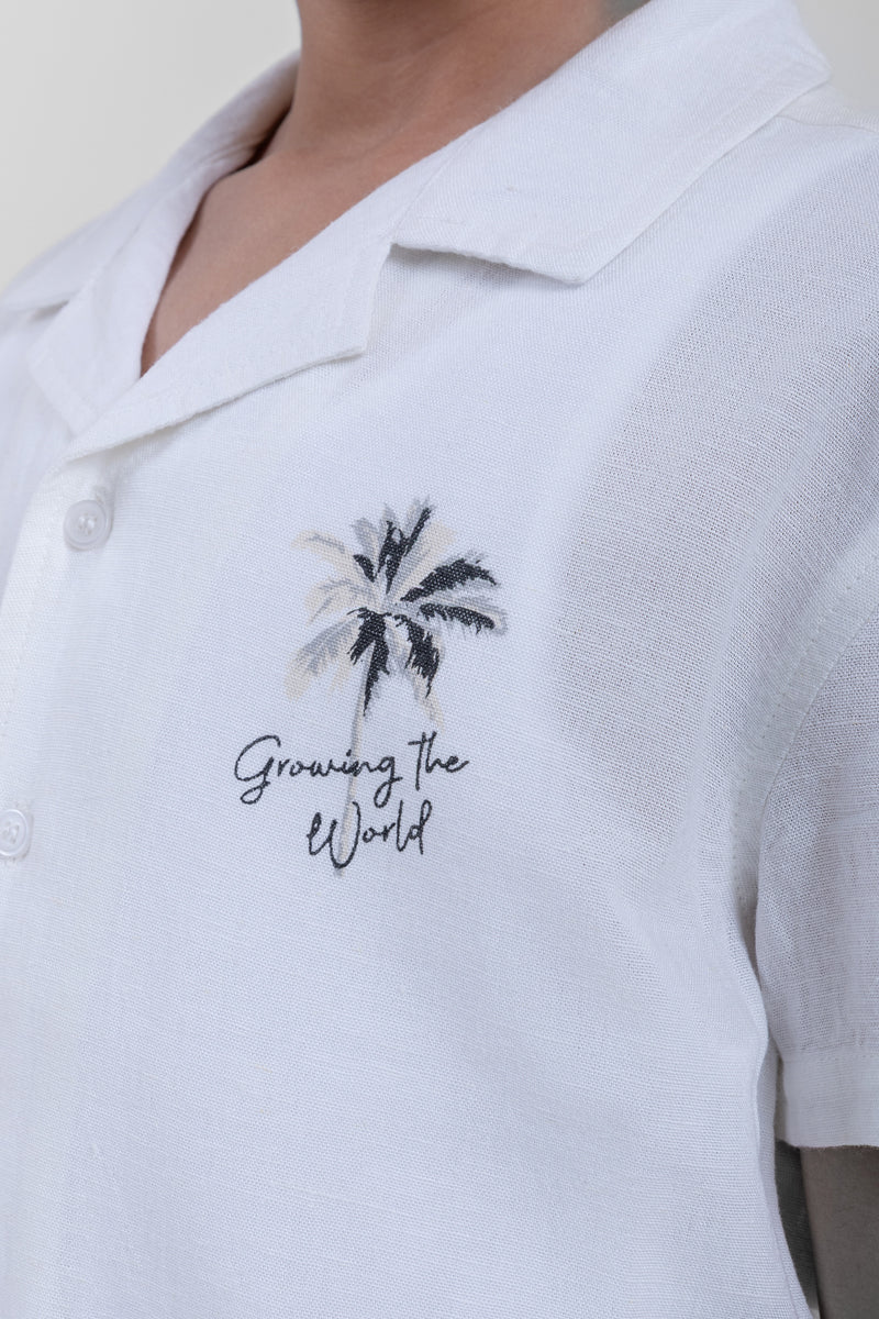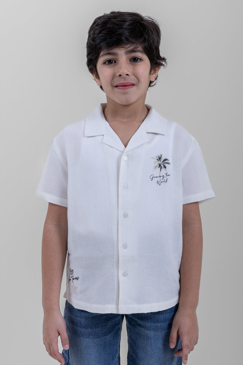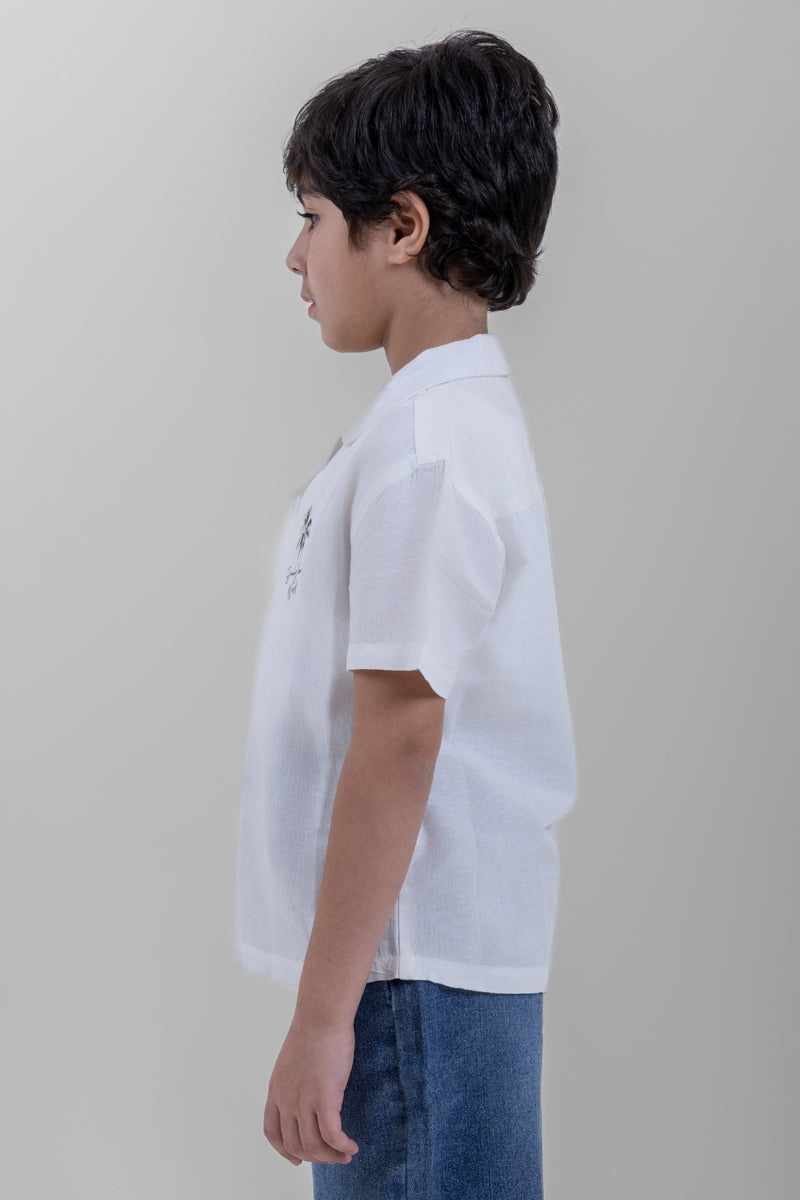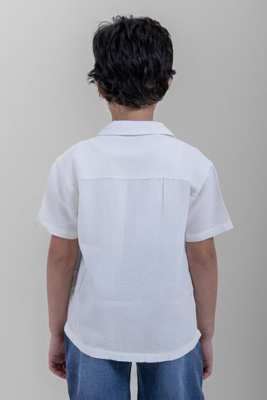 قميص اطفال بأكمام قصيرة مصمم للراحة والارتداء اليومي يتميز بياقة كلاسيكية وازرار امامية وتطريز وقصة مريحة مناسب للارتداء اليومي والخروجات والمناسبات سهل التنسيق مع البنطلون او الشورت ومثالي للاستخدام اليومي