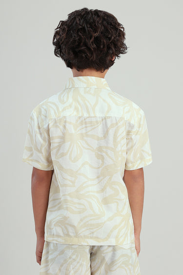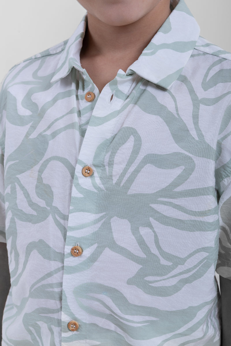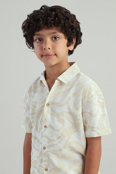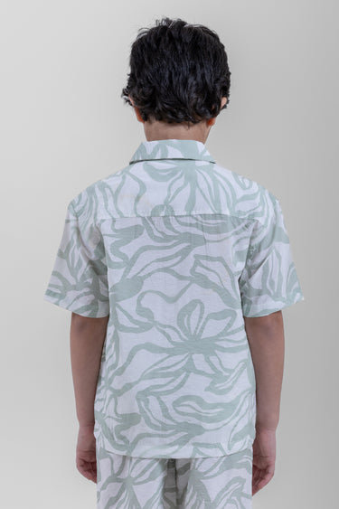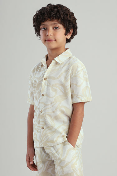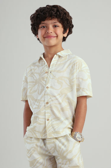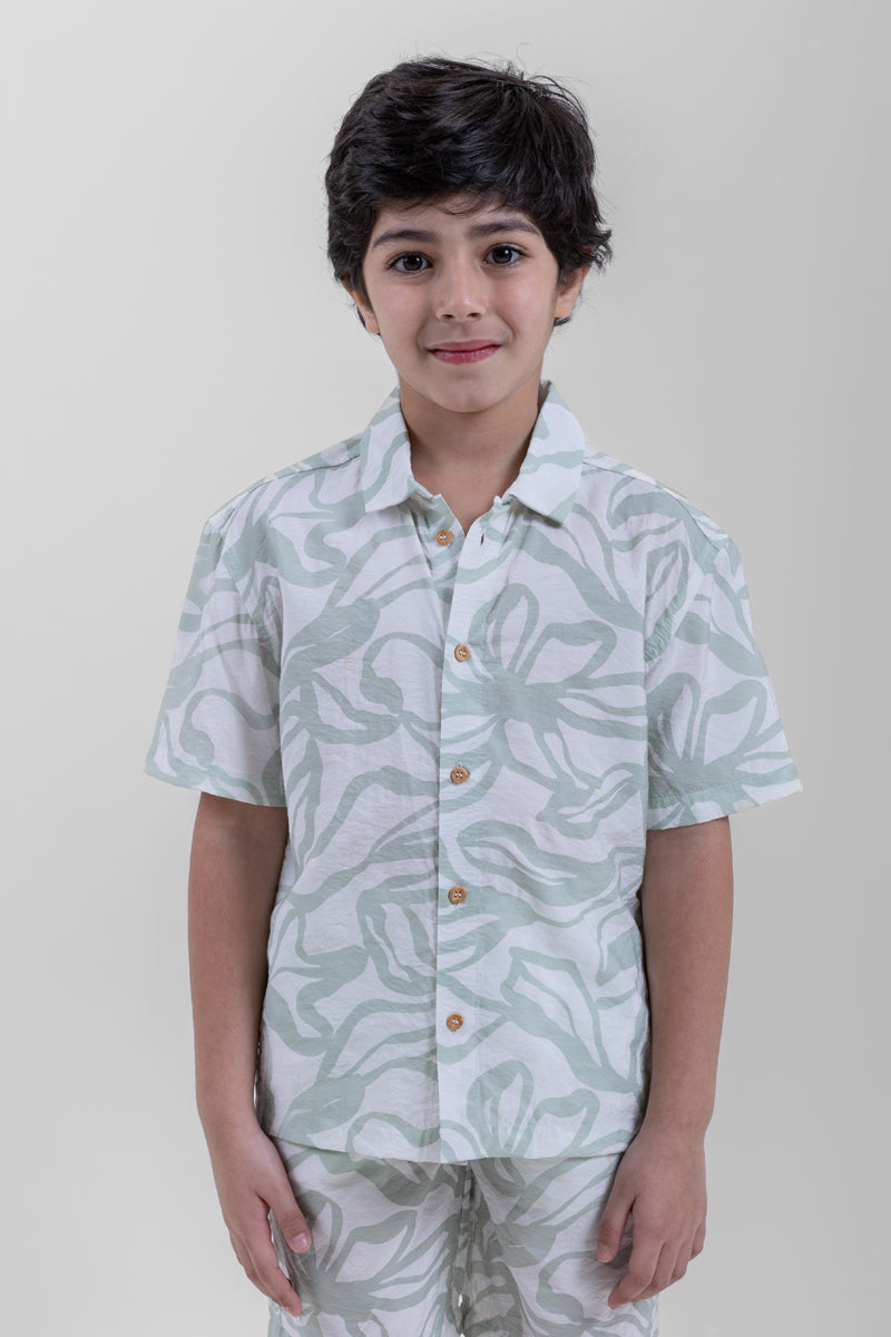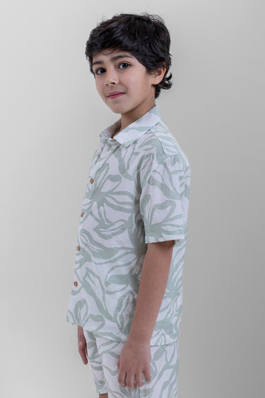 قميص اطفال كم قصير مصمم للراحة والارتداء اليومي يتميز بأزرار امامية وقصة مريحة وتفاصيل بطباعة مناسب للاستخدام اليومي والمناسبات والخروجات الكاجوال سهل التنسيق مع بنطلون وشورت واطقم الاطفال