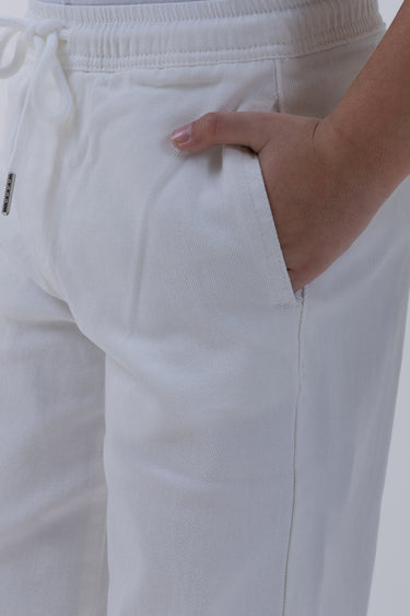 بنطلون أطفال بتصميم عملي مع قصة مستقيمة وخصر مطاطي مزود برباط قابل للتعديل. يحتوي على جيوب جانبية ويوفر راحة وحرية حركة، مناسب للاستخدام اليومي والمشاوير الخفيفة.