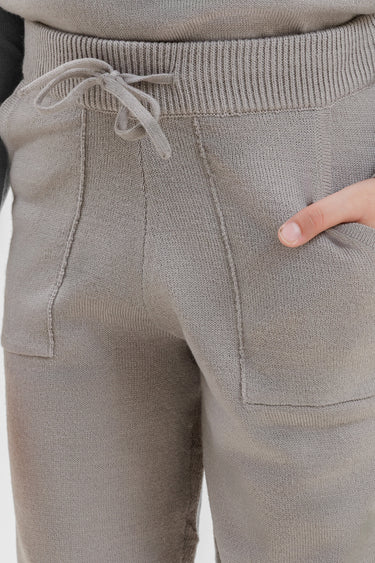 بنطلون أطفال مصنوع من قماش محبوك ناعم يوفر الدفء والراحة للاستخدام اليومي. يتميز بخصر مطاطي مع رباط قابل للتعديل لملاءمة أفضل، بالإضافة إلى جيوب جانبية عملية. يأتي بحواف سفلية مضلعة عند الكاحل تمنح ثباتًا وراحة أثناء الحركة. مناسب للارتداء اليومي، المدرسة، والأجواء الباردة.