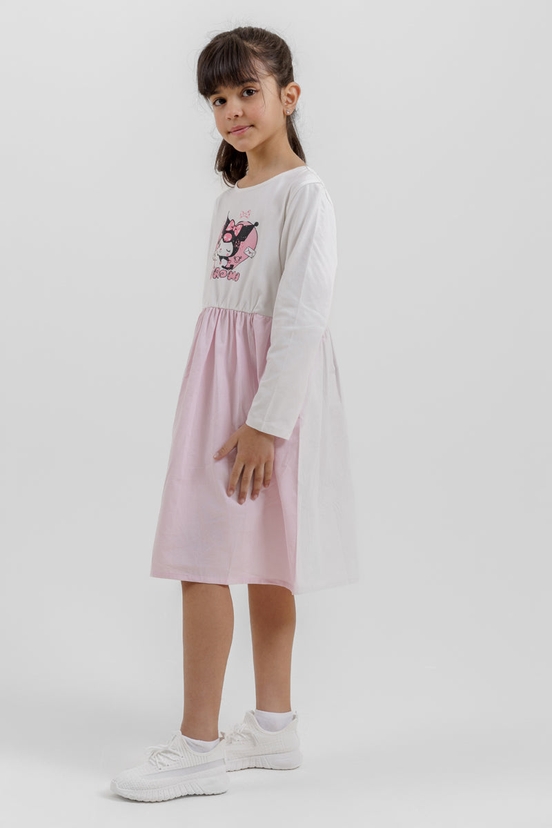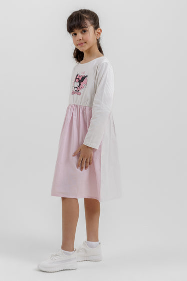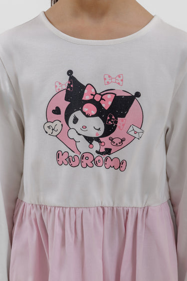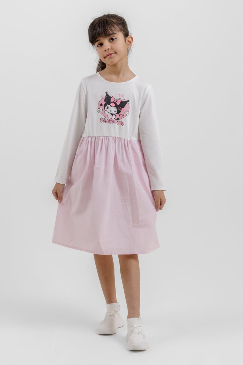 فستان أطفال مصمم للراحة والاستخدام اليومي. مصنوع من قماش ناعم وخفيف يمنح إحساسًا مريحًا على البشرة. يأتي بتصميم بأكمام طويلة مع قصة مريحة وجزء سفلي واسع يتيح حرية الحركة. مزود بطبعة Kuromi لطيفة على الصدر تضيف لمسة مرحة ومحببة للأطفال. مناسب للارتداء اليومي، المدرسة، أو الخروج.