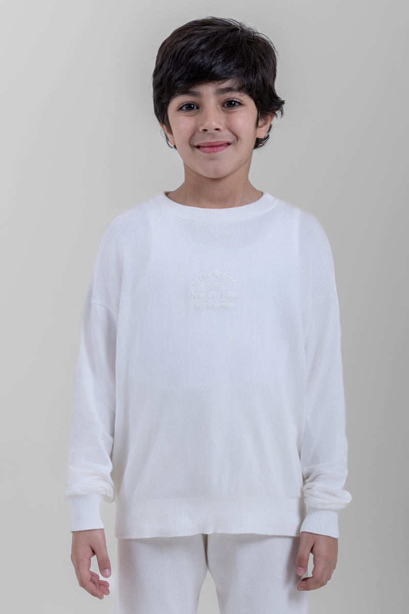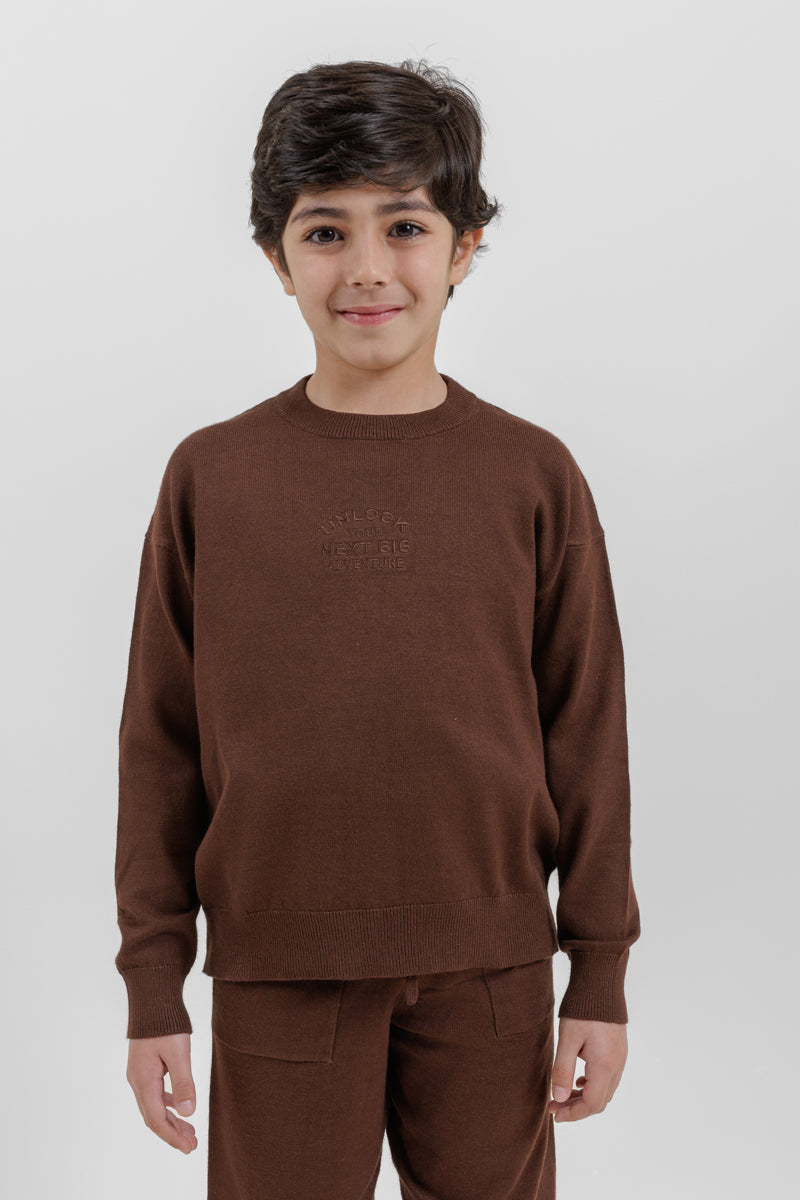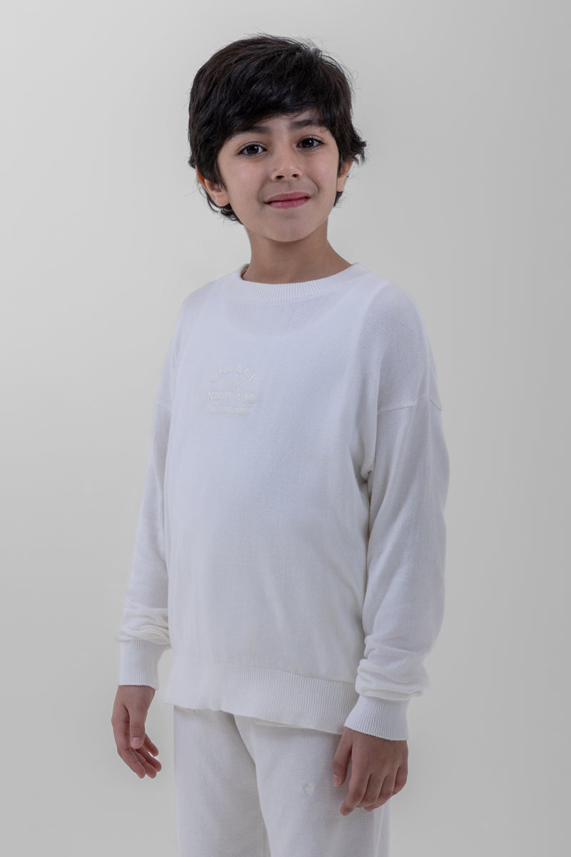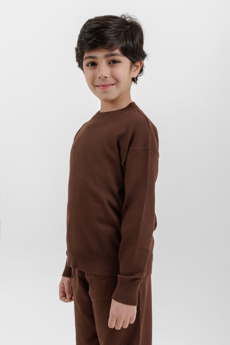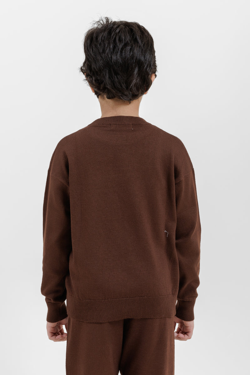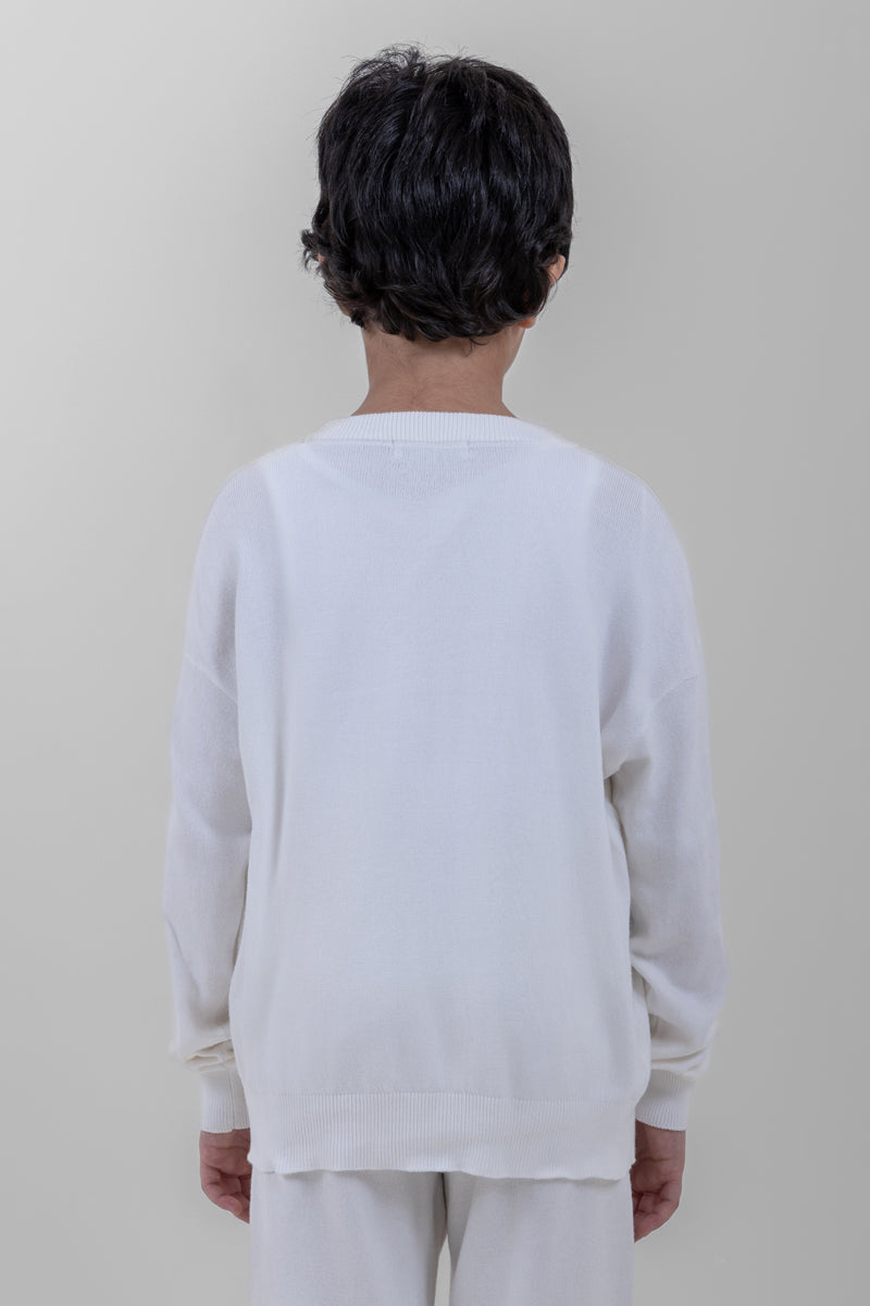كنزة أطفال مصنوعة من قماش محبوك ناعم يمنح الدفء والراحة للاستخدام اليومي. تأتي بياقة دائرية كلاسيكية وأكمام طويلة مع أطراف مضلعة عند الأكمام والحافة السفلية لثبات أفضل. مزودة بتفصيل أمامي بارز خفيف يمنحها مظهرًا أنيقًا وبسيطًا. مناسبة للإطلالات اليومية، المدرسة، والأجواء الباردة.