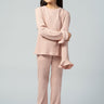 بنطلون أطفال بتصميم مضلع وقصة واسعة من الأسفل تمنح مظهراً أنيقاً ومريحاً في الوقت نفسه. يتميز بخصر مريح لسهولة الارتداء وثبات أفضل، مع خامة ناعمة تسمح بحرية الحركة طوال اليوم. مناسب للتنسيق اليومي أو الإطلالات المرتبة.