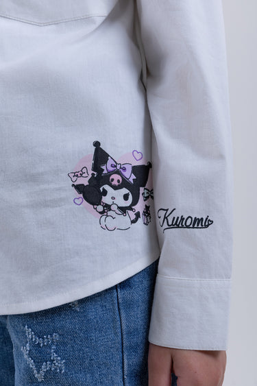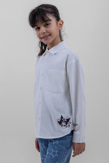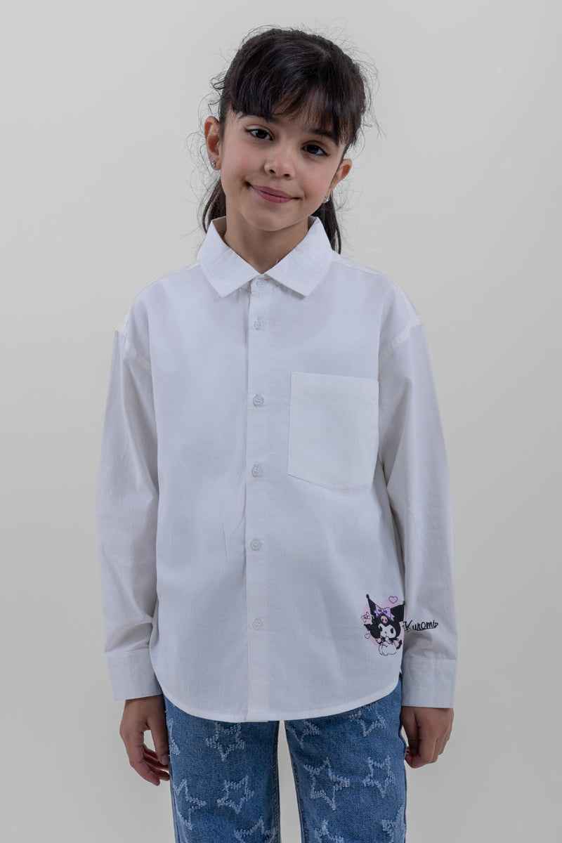 قميص بنات بأكمام طويلة وتصميم بأزرار أمامية مع قصة مريحة. يتميز بطباعة كرتونية تضيف لمسة مرحة، مناسب للاستخدام اليومي والإطلالات الكاجوال.