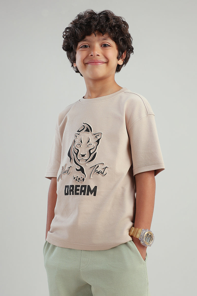 تيشيرت أطفال بأكمام قصيرة وقصة مريحة مع تفاصيل مطبوعة يوفر راحة في الارتداء ومناسب للتنسيق اليومي