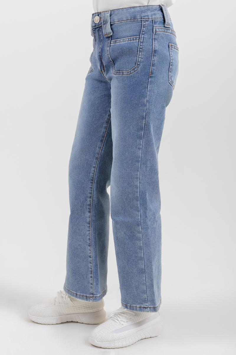بنطلون أطفال جينز مصمم ليجمع بين المتانة والراحة في الاستخدام اليومي. مصنوع من قماش جينز عملي يوفر توازنًا بين الثبات والمرونة لحرية الحركة. يأتي بقصة مستقيمة مع خصر كلاسيكي وزر إغلاق وجيوب عملية. قطعة أساسية مناسبة للمدرسة، الخروج، والارتداء اليومي.