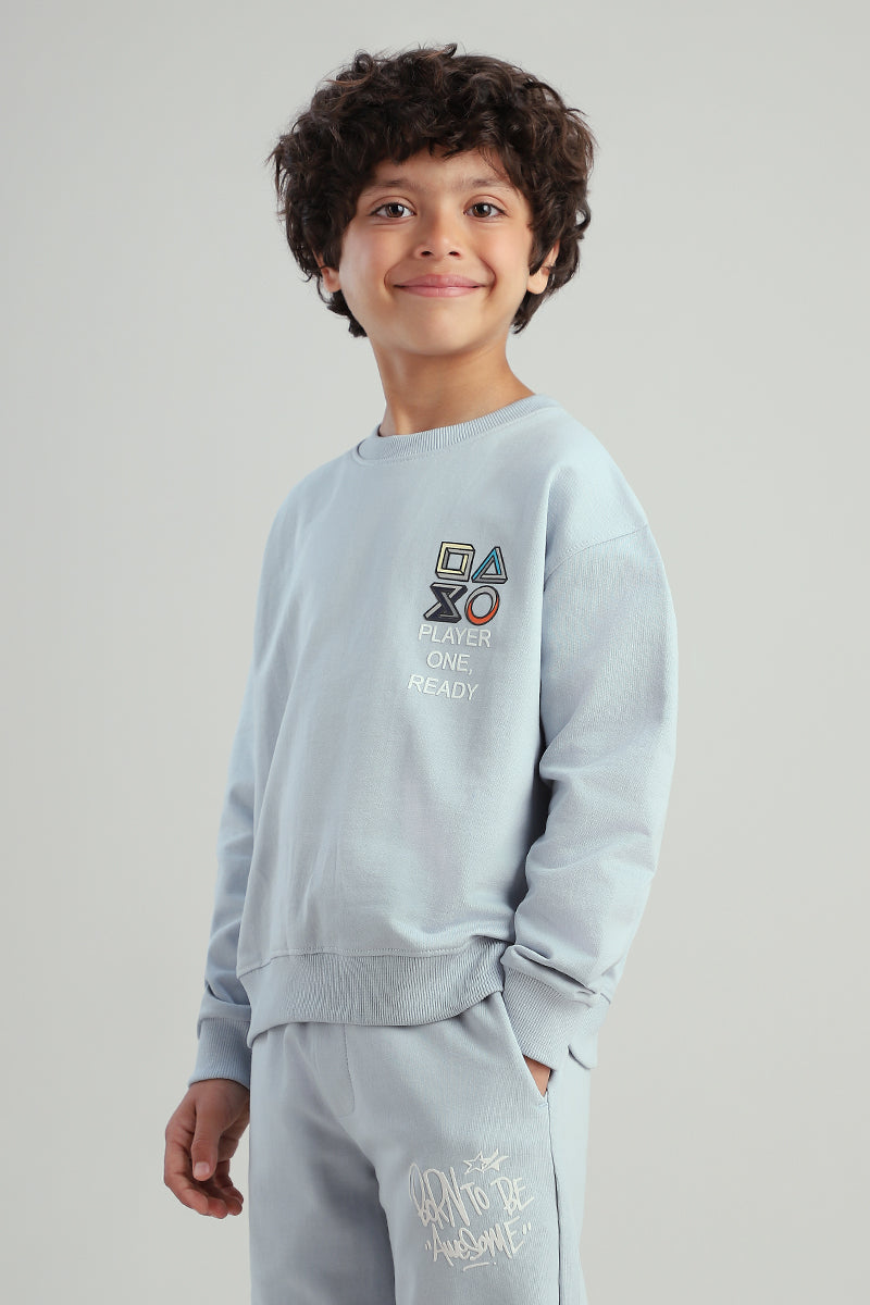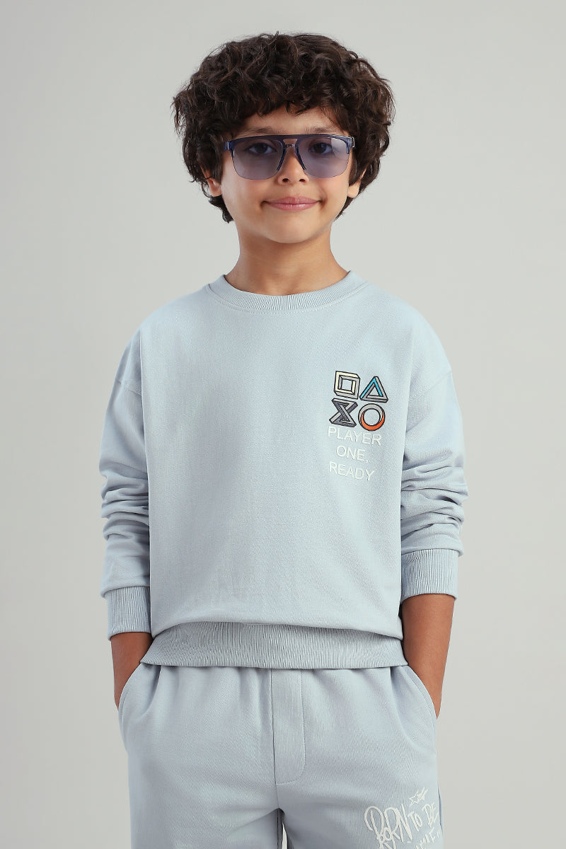 سويت شيرت أطفال كاجوال بتصميم مريح مناسب للاستخدام اليومي يتميز بياقة دائرية وأكمام طويلة لراحة أكبر أثناء الحركة تصميم بسيط من الأمام مع طبعة خلفية تضيف لمسة عصرية مع الحفاظ على طابع عملي