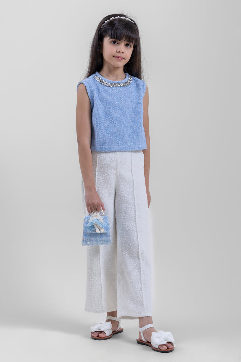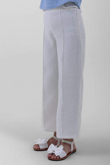 بنطلون مريح للبنات مصنوع من نسيج محبوك بملمس ناعم، يتميّز بقصّة واسعة وتصميم مستقيم يوفّر حرية الحركة مع مظهر أنيق. مناسب للاستخدام اليومي أو للإطلالات المتناسقة.