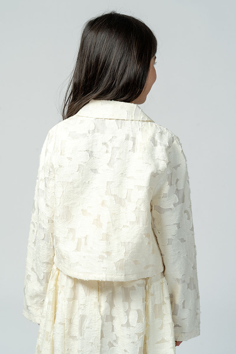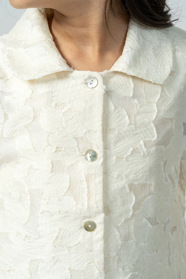 جاكيت خفيف بنسيج بارز وأكمام طويلة، مزوّد بأزرار أمامية وياقة كلاسيكية. تصميم عملي وأنيق، مناسب للتنسيق اليومي والارتداء المتعدد.