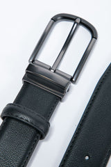 أكمِل أناقتك مع هذا الحزام الرجالي بلونه السادة والمصنوع من جلد صناعي متين. يتميز بتصميم كلاسيكي وبإغلاق أنيق من إبزيم معدني، ليناسب الإطلالات الرسمية واليومية بكل ثقة.