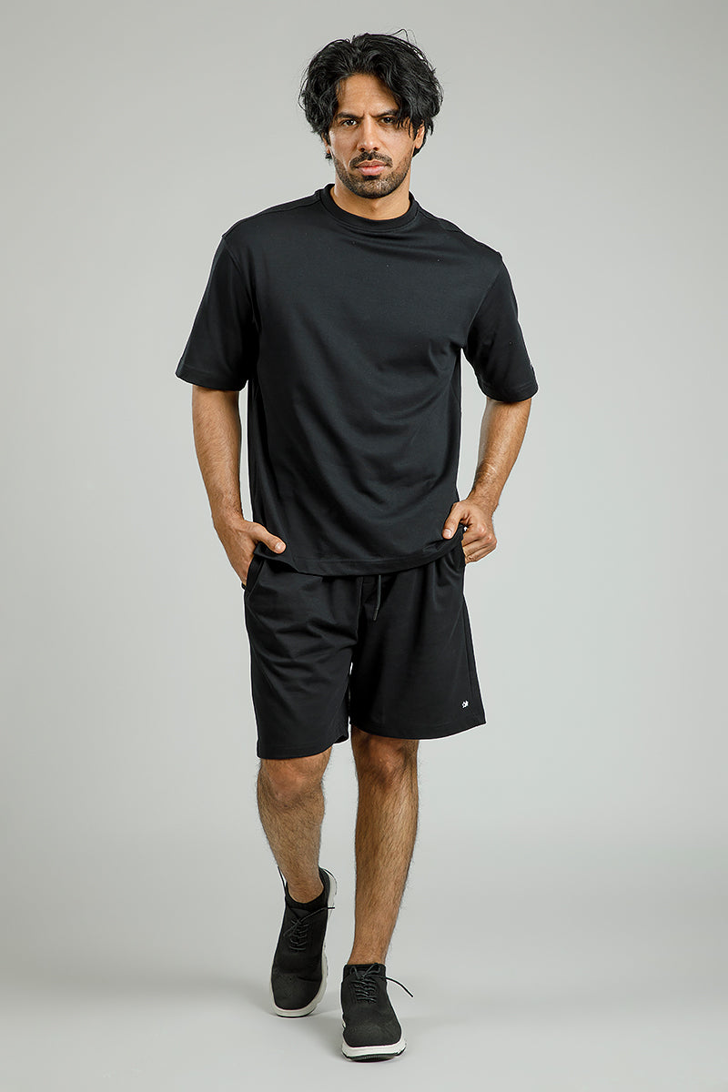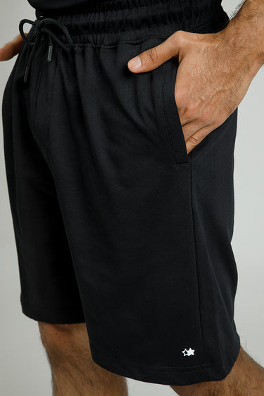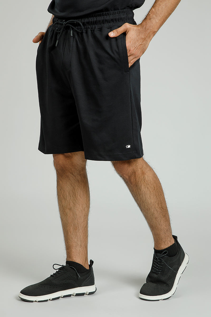 شورت بيسك بتصميم عملي ومريح يتميز بخصر مطاطي مع رباط قابل للتعديل وجيوب جانبية، مثالي للإطلالات البسيطة والارتداء اليومي