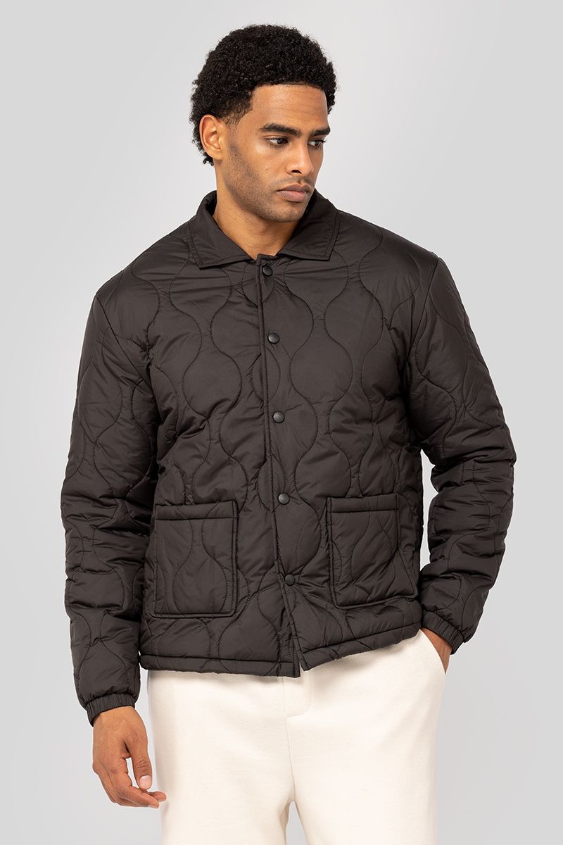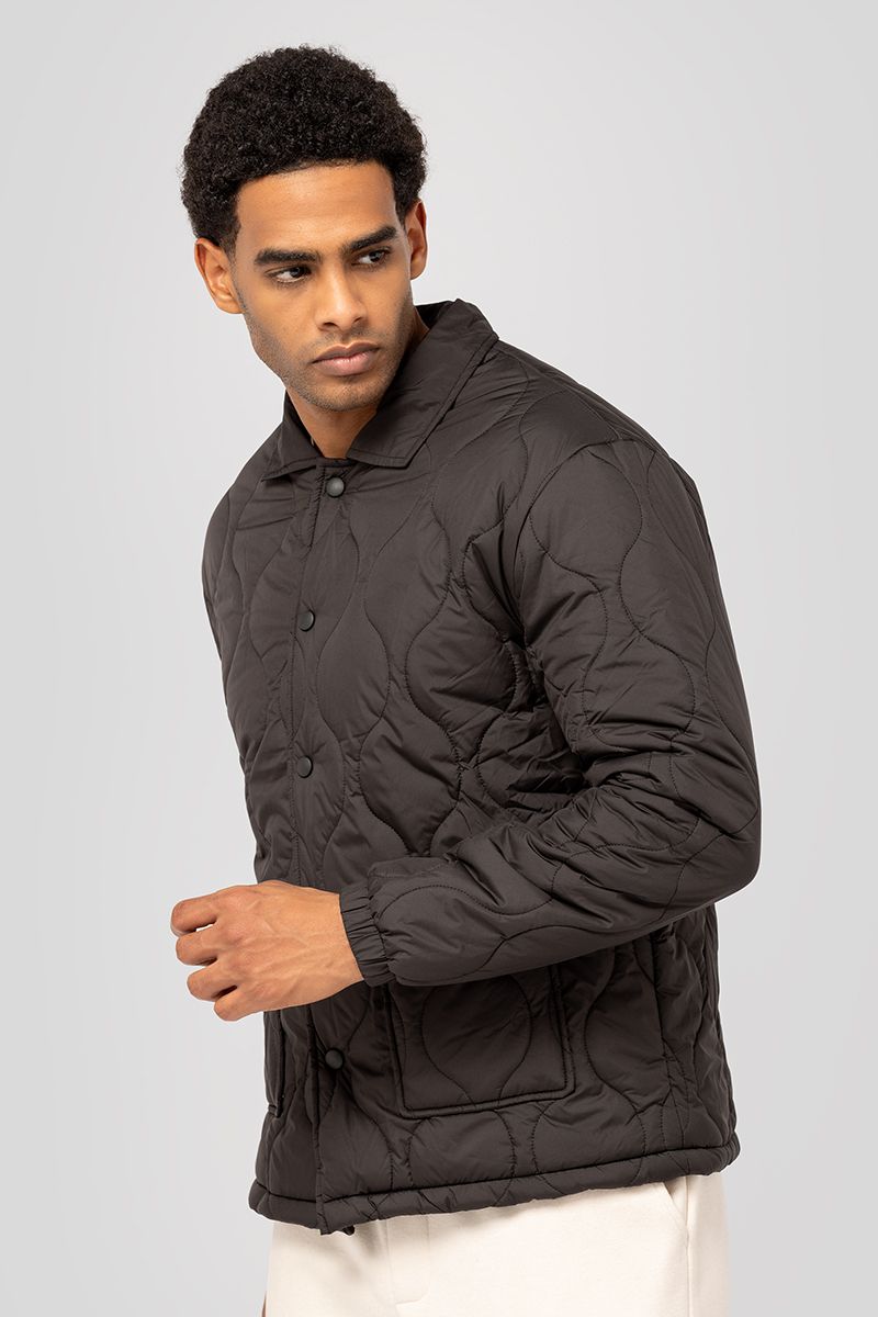 جاكيت رجالي مبطن بتصميم متموج لإضافة لمسة أنيقة، مع إغلاق بالأزرار وجيوب أمامية عملية. يوفر دفئاً خفيفاً وخياراً مثالياً للتنسيق مع الإطلالات الكاجوال.