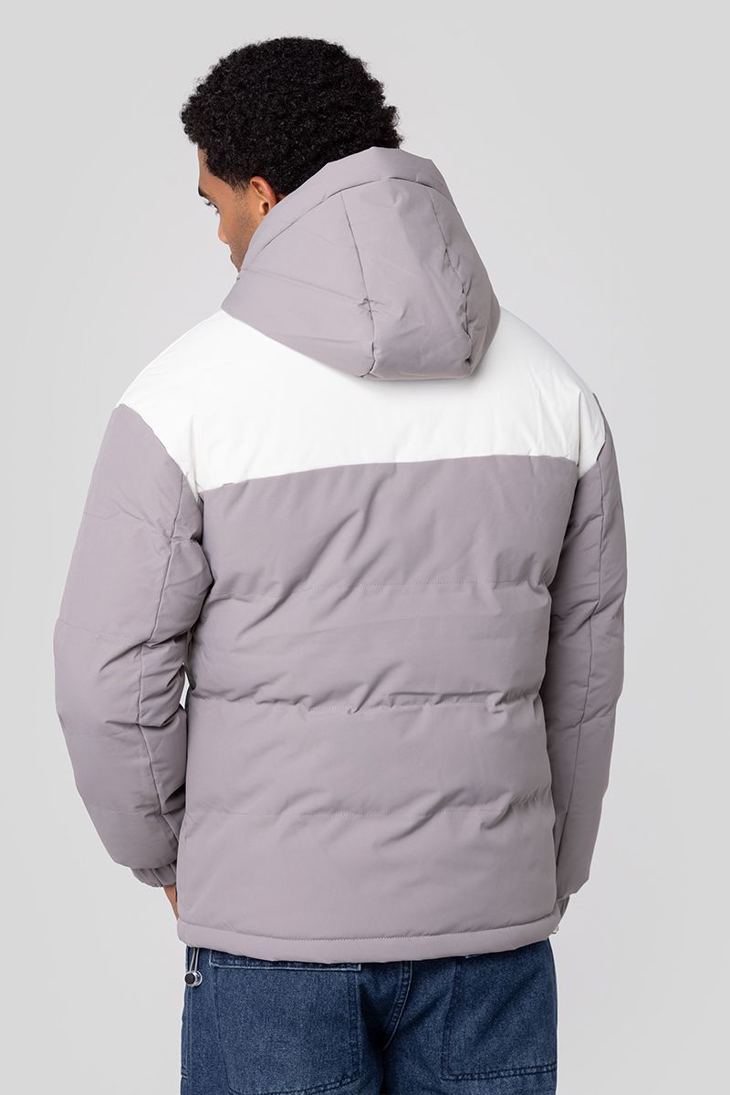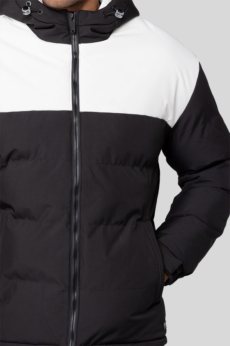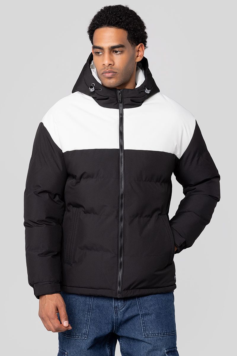 جاكيت مبطن بتصميم بلونين، مزود بسحّاب أمامي وهودي قابل للتعديل مع جيوب جانبية. يمنح دفئاً وراحة مثالية لأيام الطقس البارد.