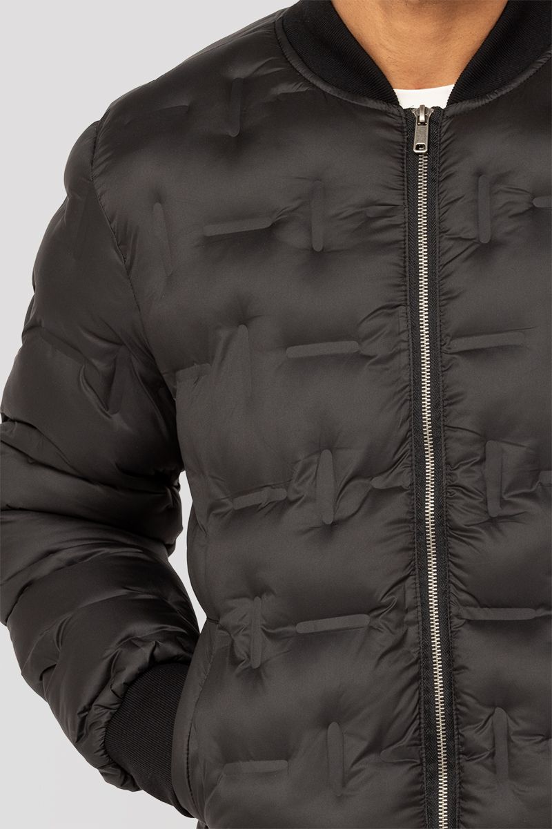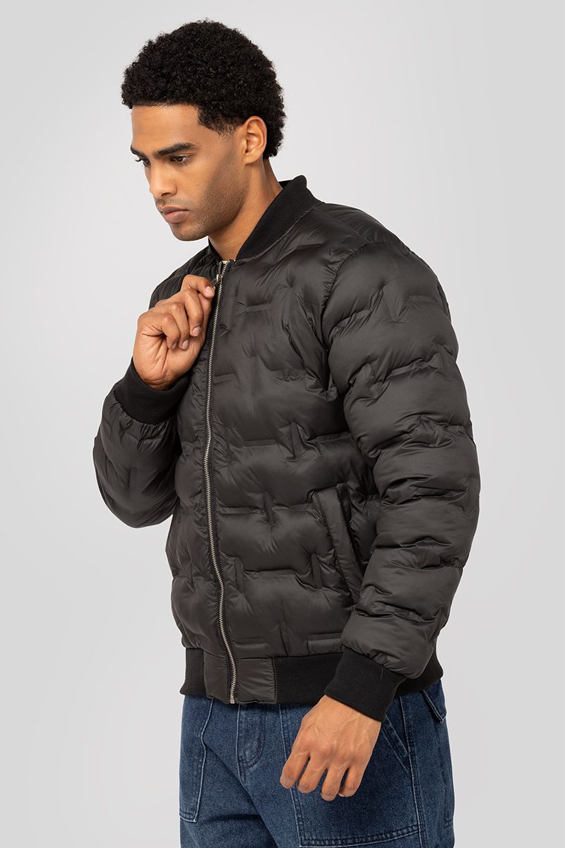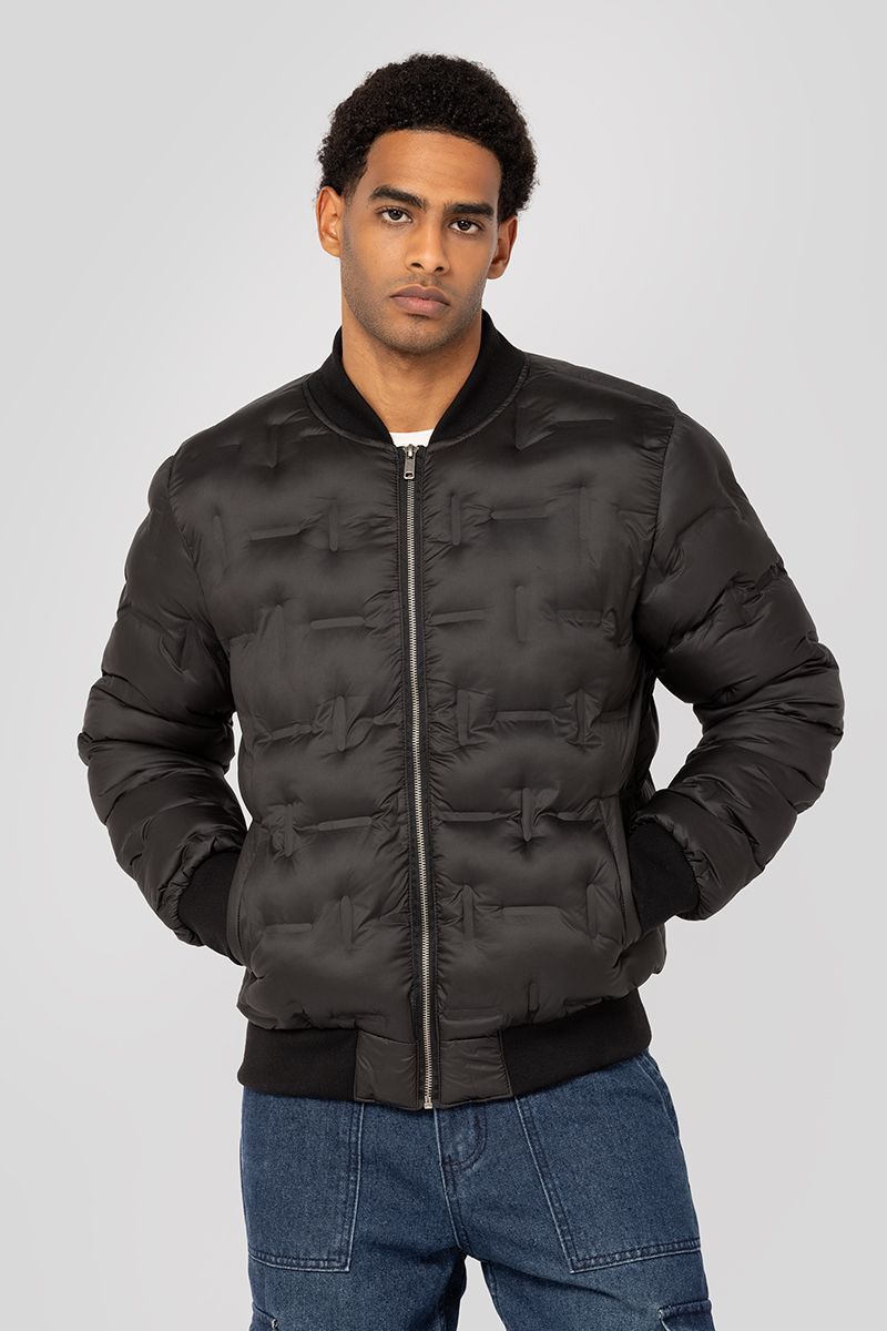 جاكيت مبطن بتصميم بومبر مع تفاصيل مبطنة. يتميز بسحّاب أمامي وحافة وأساور مطاطية وجيوب جانبية. يمنح دفئاً وإطلالة عصرية عملية.