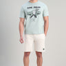 طقم منزلي رجالي يتكون من تيشيرت بأكمام قصيرة مع شورت بخصر مطاطي. تصميم مريح بقصة عملية مناسب للارتداء داخل المنزل والاستخدام اليومي.