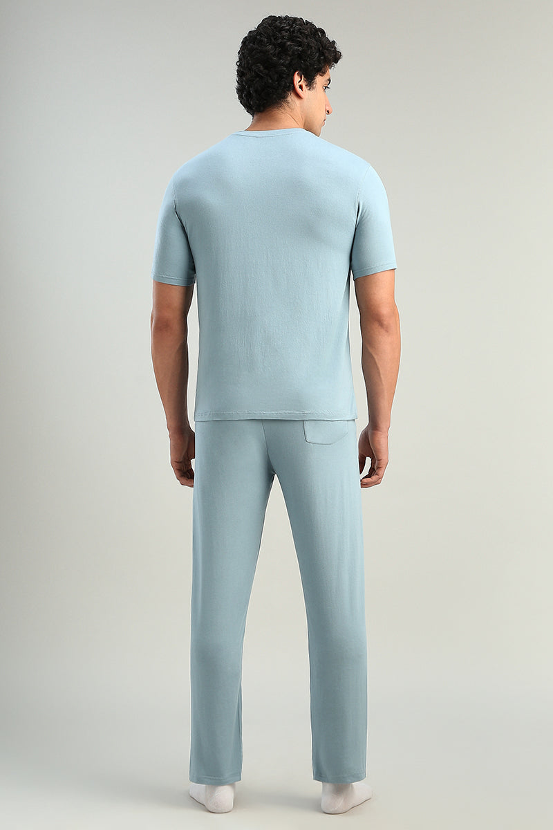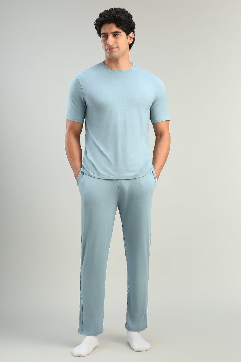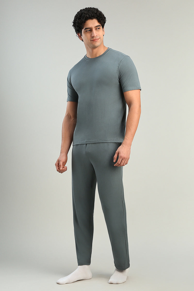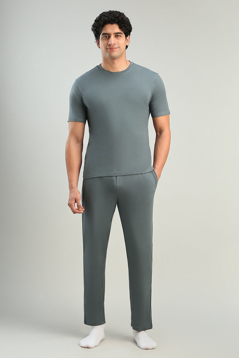 طقم منزلي مريح يتكون من تيشيرت بأكمام قصيرة مع بنطلون بتصميم عملي وراحة عالية مناسب للاستخدام اليومي داخل المنزل يتميز بقصة مريحة وخصر مطاطي لسهولة الحركة