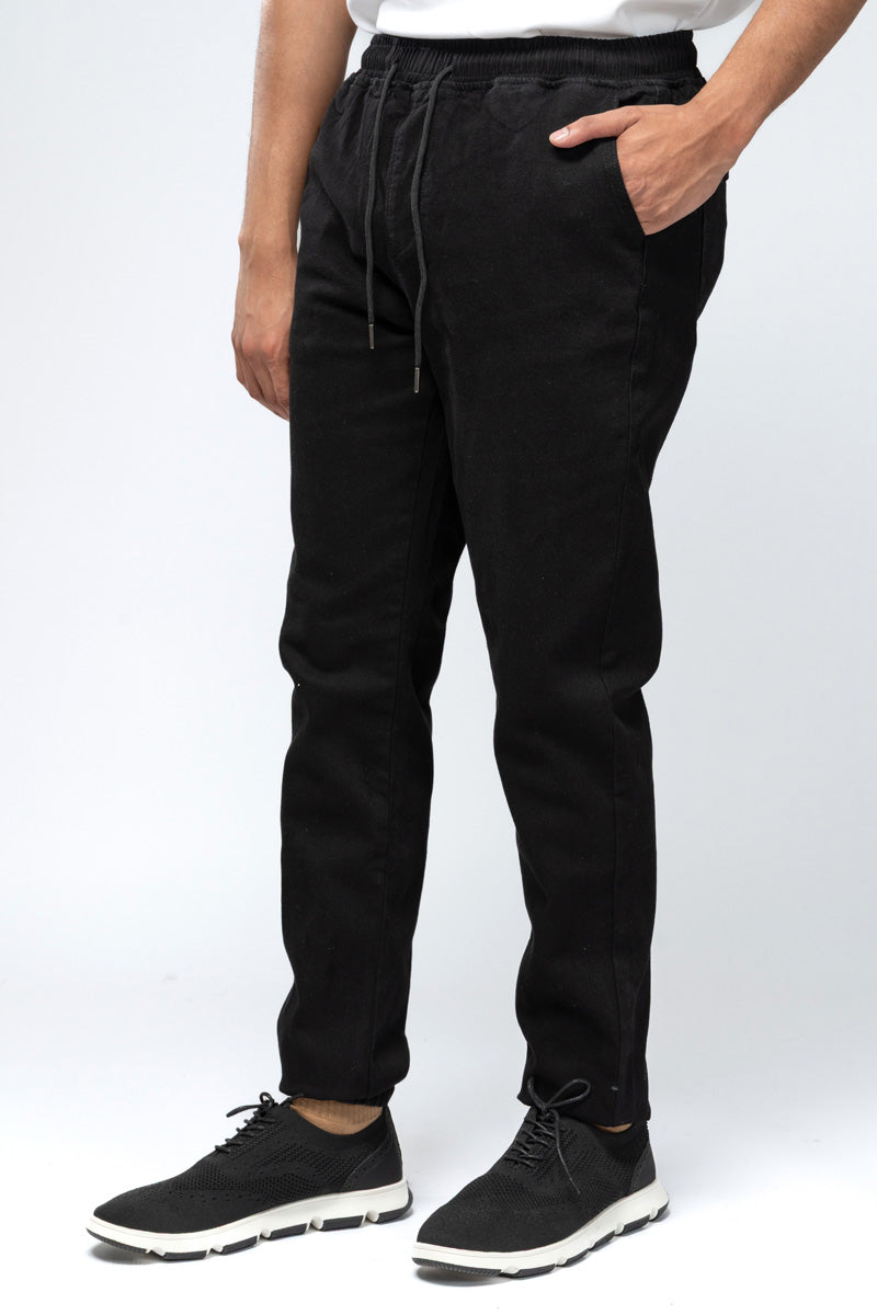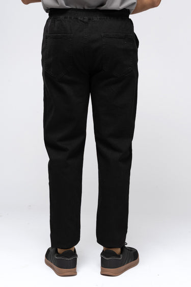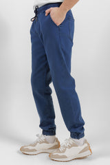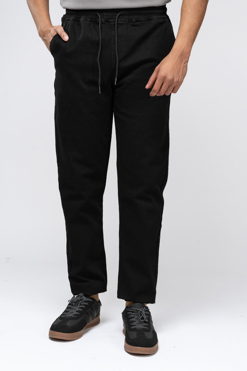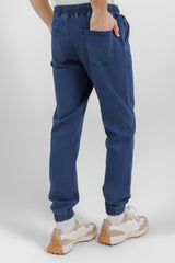 بنطلون مصنوع من قماش جينز عملي يجمع بين الراحة والمظهر العصري. يتميز بخامة متينة ومرنة توفر سهولة في الحركة مع الحفاظ على شكل منظم. يأتي بخصر مطاطي مع رباط قابل للتعديل لملاءمة مريحة، إضافة إلى جيوب جانبية وجيوب خلفية للاستخدام اليومي. ينتهي بحواف سفلية مطاطية تمنح إطلالة مرتبة تناسب التنسيقات اليومية غير الرسمية.