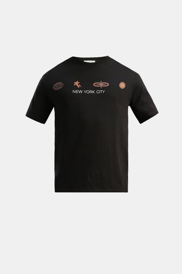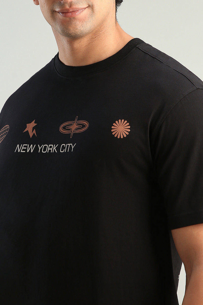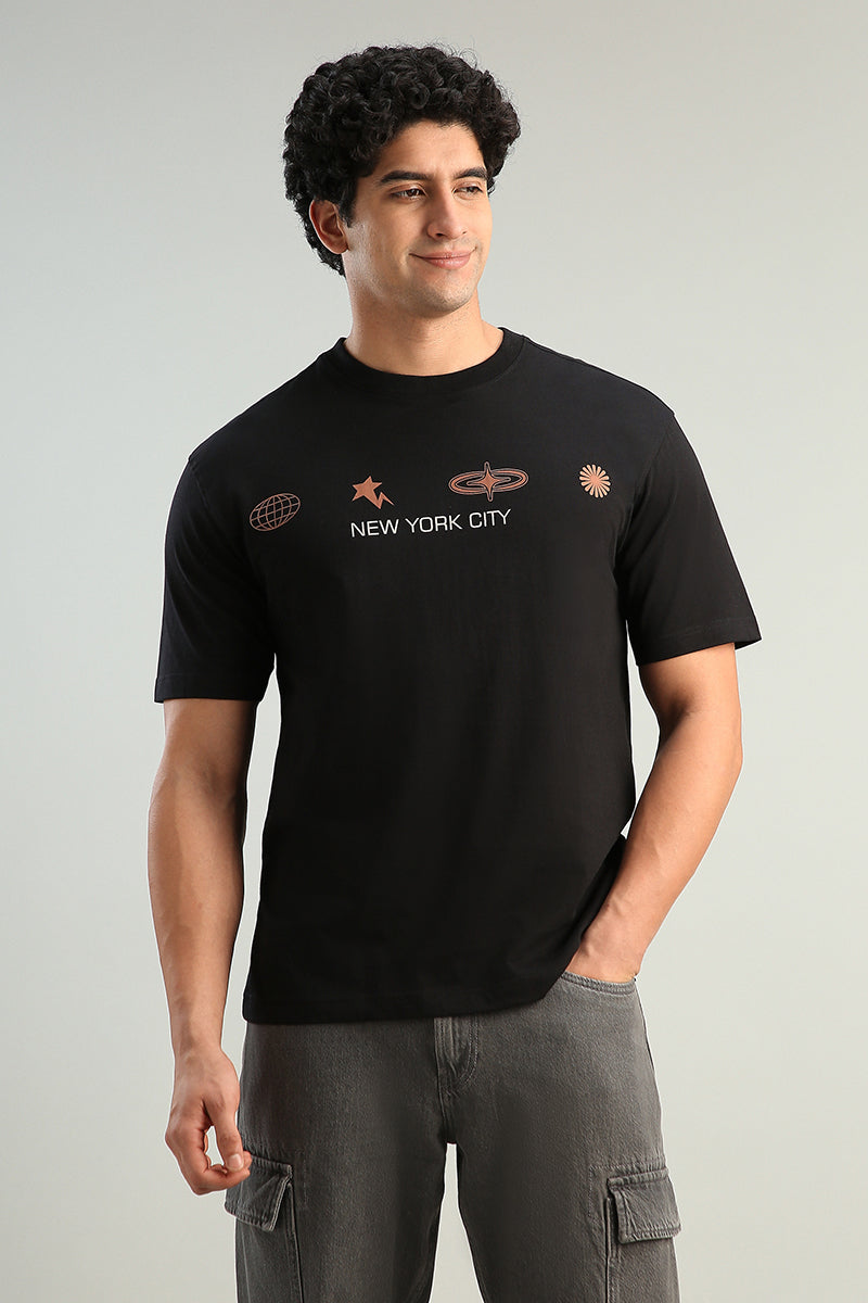 تيشيرت بقصة مريحة مزود بطباعة جرافيك عصرية. مناسب للاستخدام اليومي ويوفر راحة وسهولة في التنسيق مع مختلف الإطلالات الكاجوال.