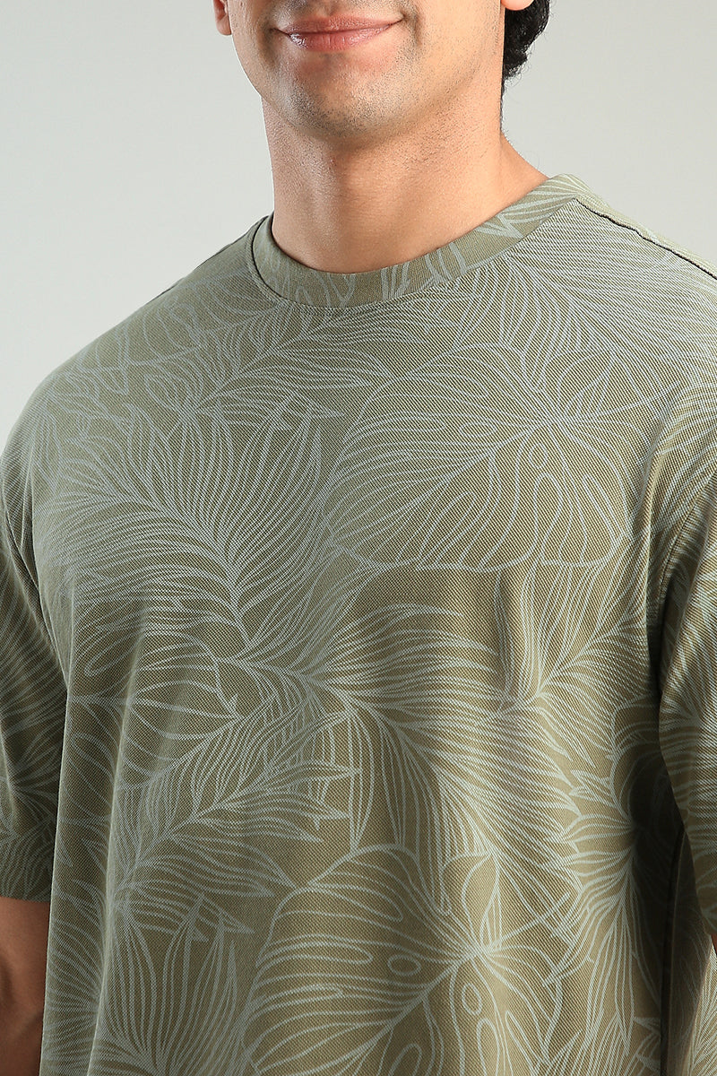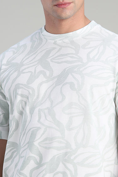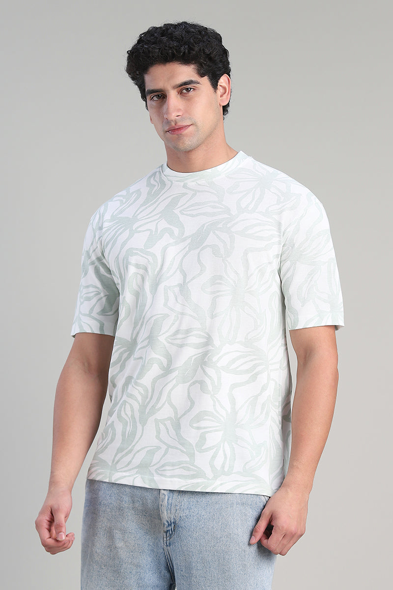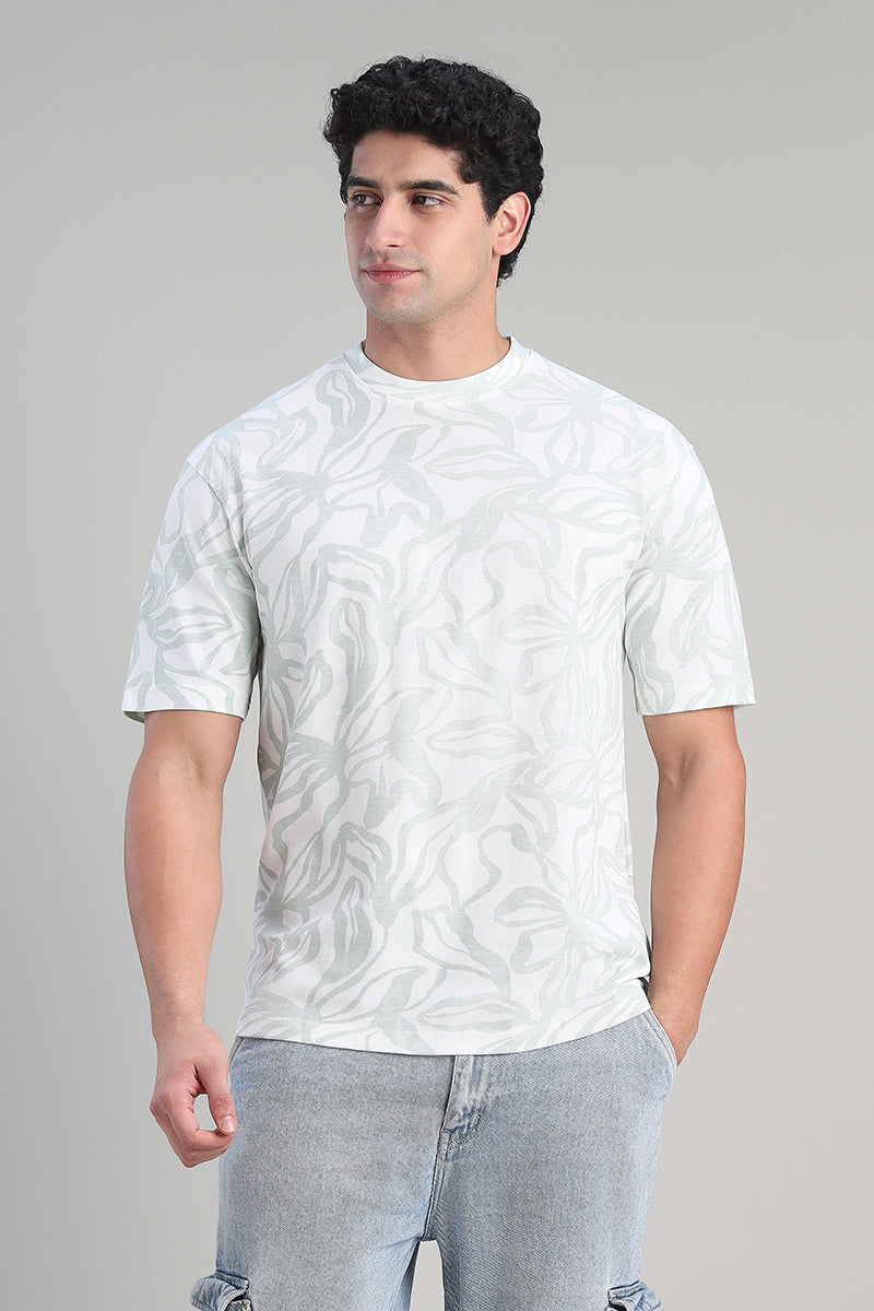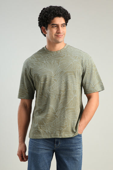 تيشيرت كاجوال بتصميم عملي يتميز بقصة مريحة وياقة دائرية مع نقشة تغطي كامل القطعة يمنح مظهرا عصريا مناسب للاستخدام اليومي وسهل التنسيق