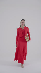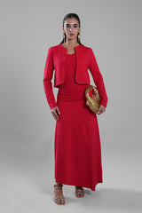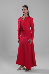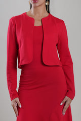 جاكيت نسائي قصير يتميز بقصة مفتوحة وتصميم انسيابي بخطوط نظيفة. يأتي بأكمام طويلة وياقة أنيقة تمنح مظهراً متوازناً وسهل التنسيق مع الفساتين أو الإطلالات الرسمية. مناسب للإطلالات المسائية والتنسيقات الراقية ذات الطابع البسيط.