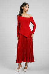 فستان بكتف مكشوف وتنورة بكسرات