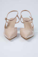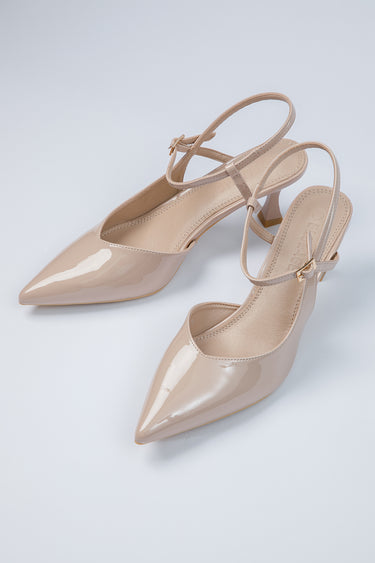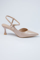 حذاء أنيق بمقدمة مدببة مع حزام خلفي قابل للتعديل وإبزيم يضمن ثباتاً مريحاً عند الارتداء. تصميم ناعم بقصّة راقية يجعله مناسباً للمناسبات الرسمية أو للإطلالات اليومية المرتبة. يوفر راحة مع ارتفاع كعب متوازن وشكل كلاسيكي يسهل تنسيقه مع الفساتين أو الإطلالات العملية.
