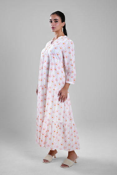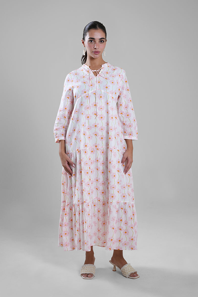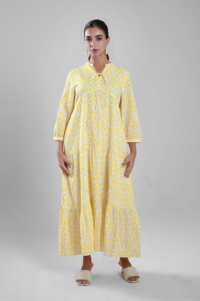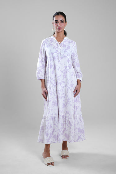 جلابية نسائية بقصة واسعة وانسيابية تمنح راحة عالية ومظهراً أنيقاً في آن واحد. تتميز برباط عند الياقة وأكمام طويلة تضيف لمسة مرتبة دون تكلّف. التصميم الفضفاض يجعلها مناسبة للاستخدام اليومي، المناسبات البسيطة، أو الإطلالات المريحة ذات الطابع الراقي.